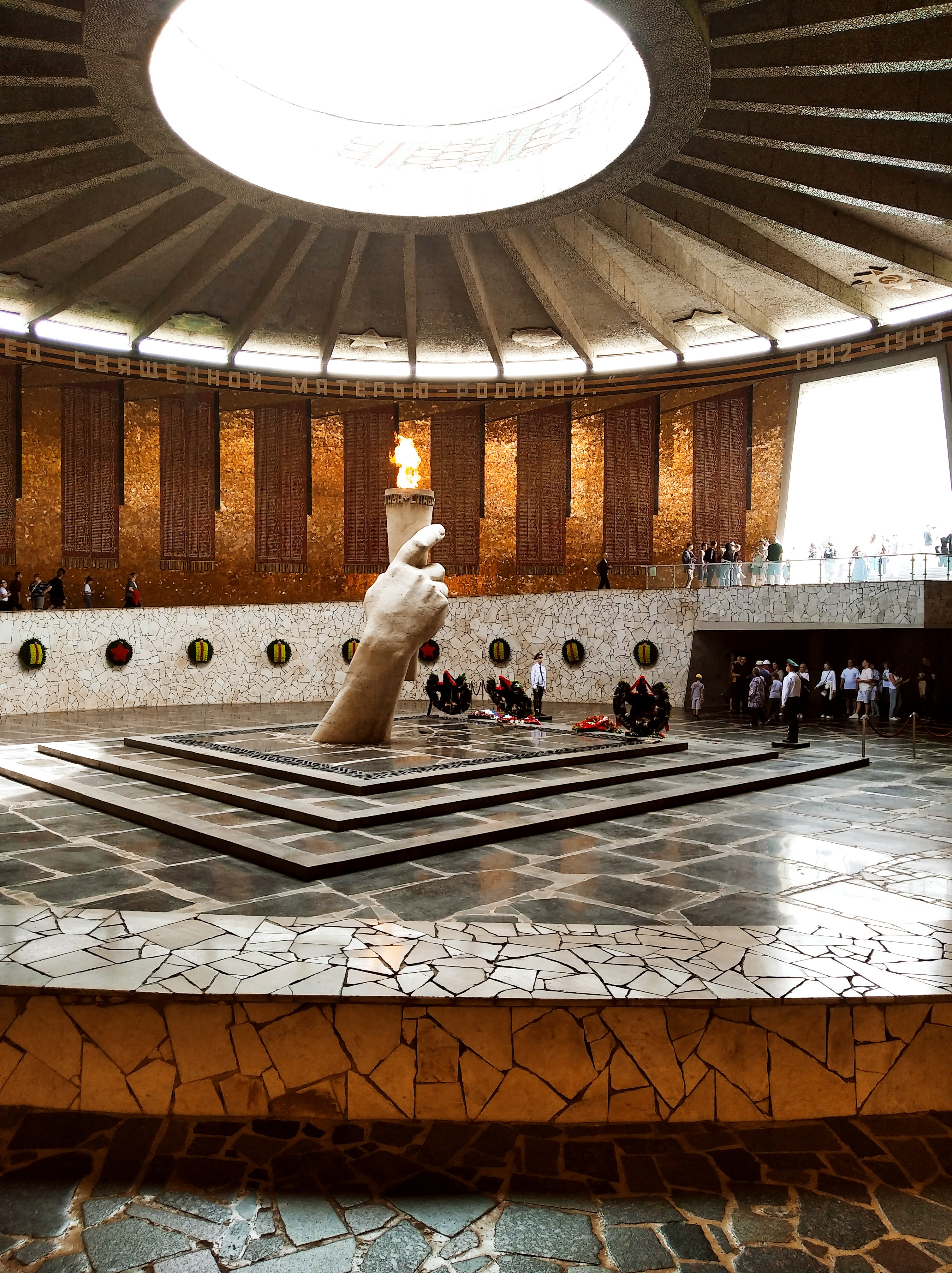 Сегодня опять весь день в дождевике. Снял только, чтобы прогуляться около тётки с мечом. По завету дяди Андрея Бересневича, оставил все вещи на моте и ушёл гулять. Тётка на месте, каменные соски торчат, а вокруг ходит куча СВОшников. Кто без ног, кто на костылях ,капец. Удачно попал ещё под смену почётного караула. Прогулялся по всему комплексу, и вы меня извините, аноны, но читая надписи в стенах мемориалов у меня ком в горле стоял. Каждый раз. Эх..