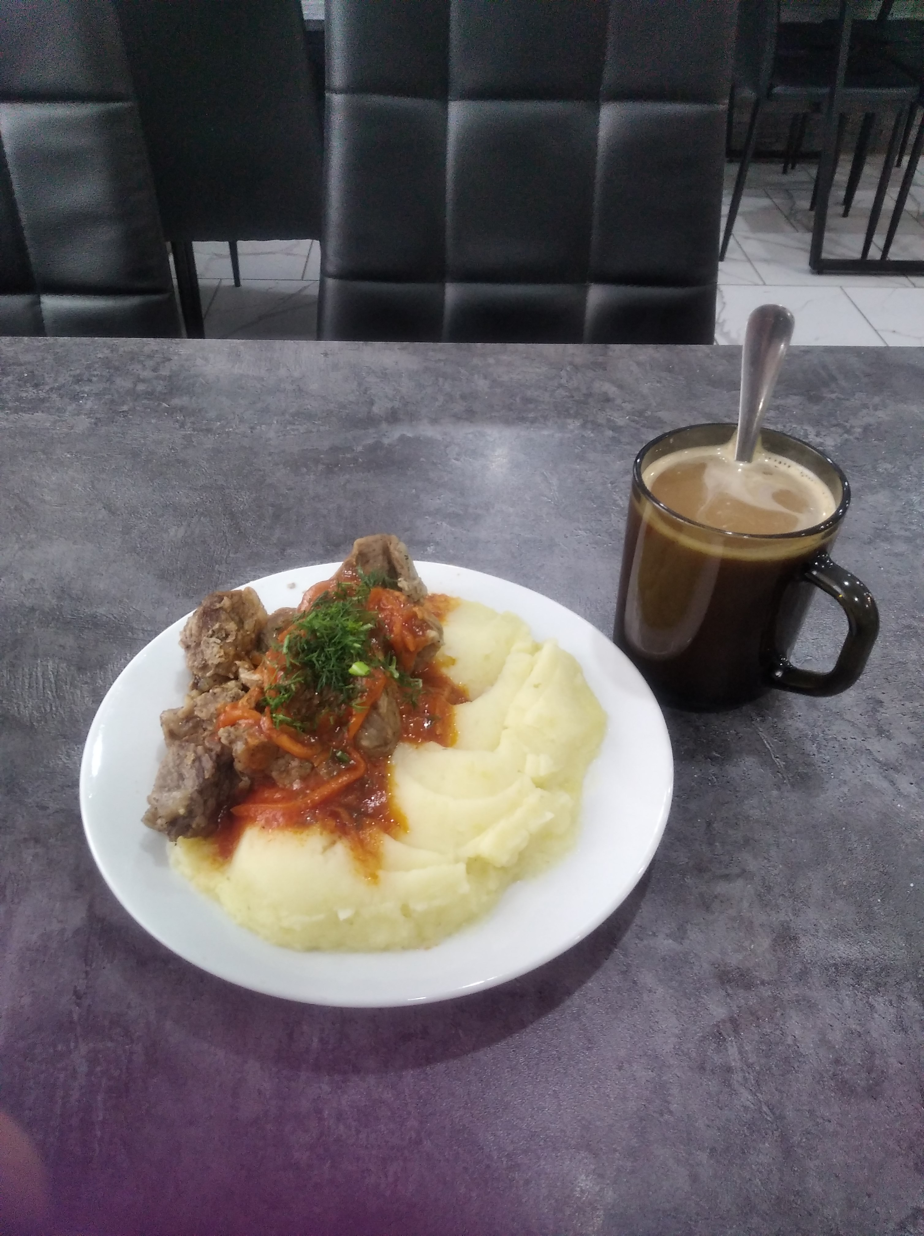 Я уже успел проголодаться и заехал в кафешку калмыцкой кухни. Дратути, говорю, можно мне чего-нибудь национального? Дали суп МАХАН и калмыцкий чай. Суп, копия шурпа: здоровый кусок мяса, пополам разрезанные здоровые картофелины, лук и лапша, чего в шурпе не было. В целом, вкусно, но лагман мне нравится больше. Король всех супов!