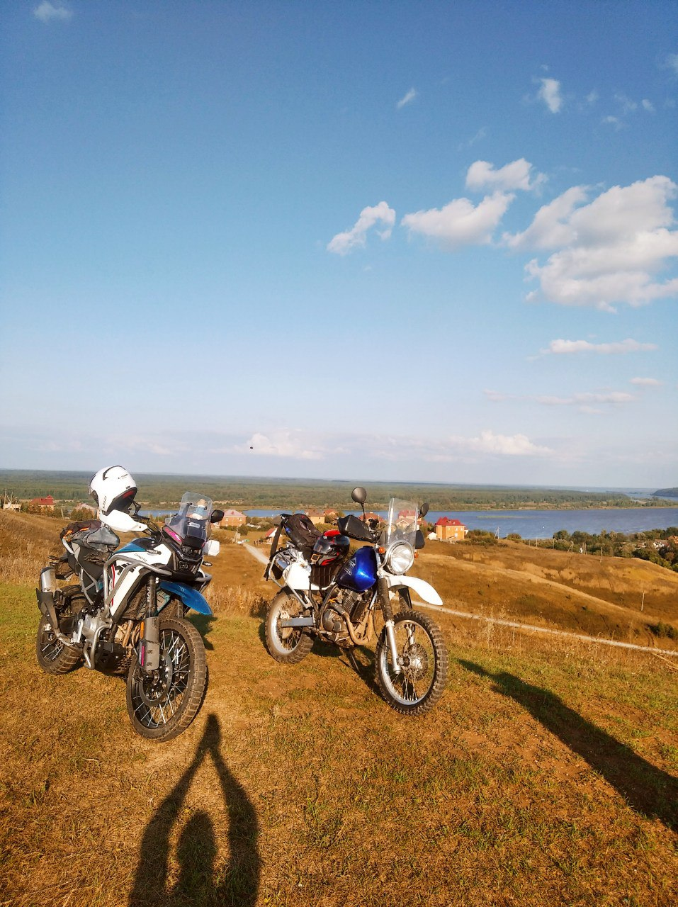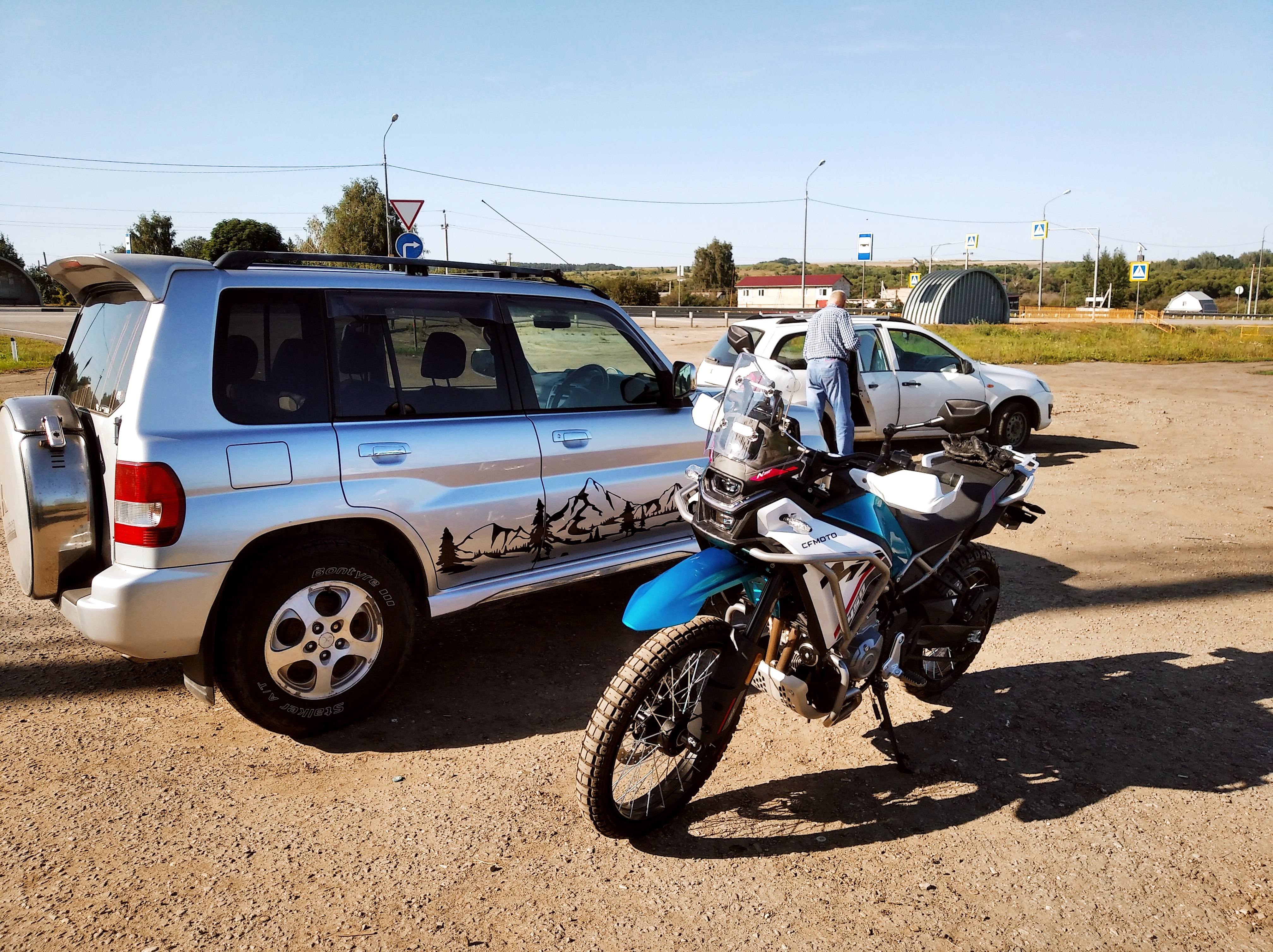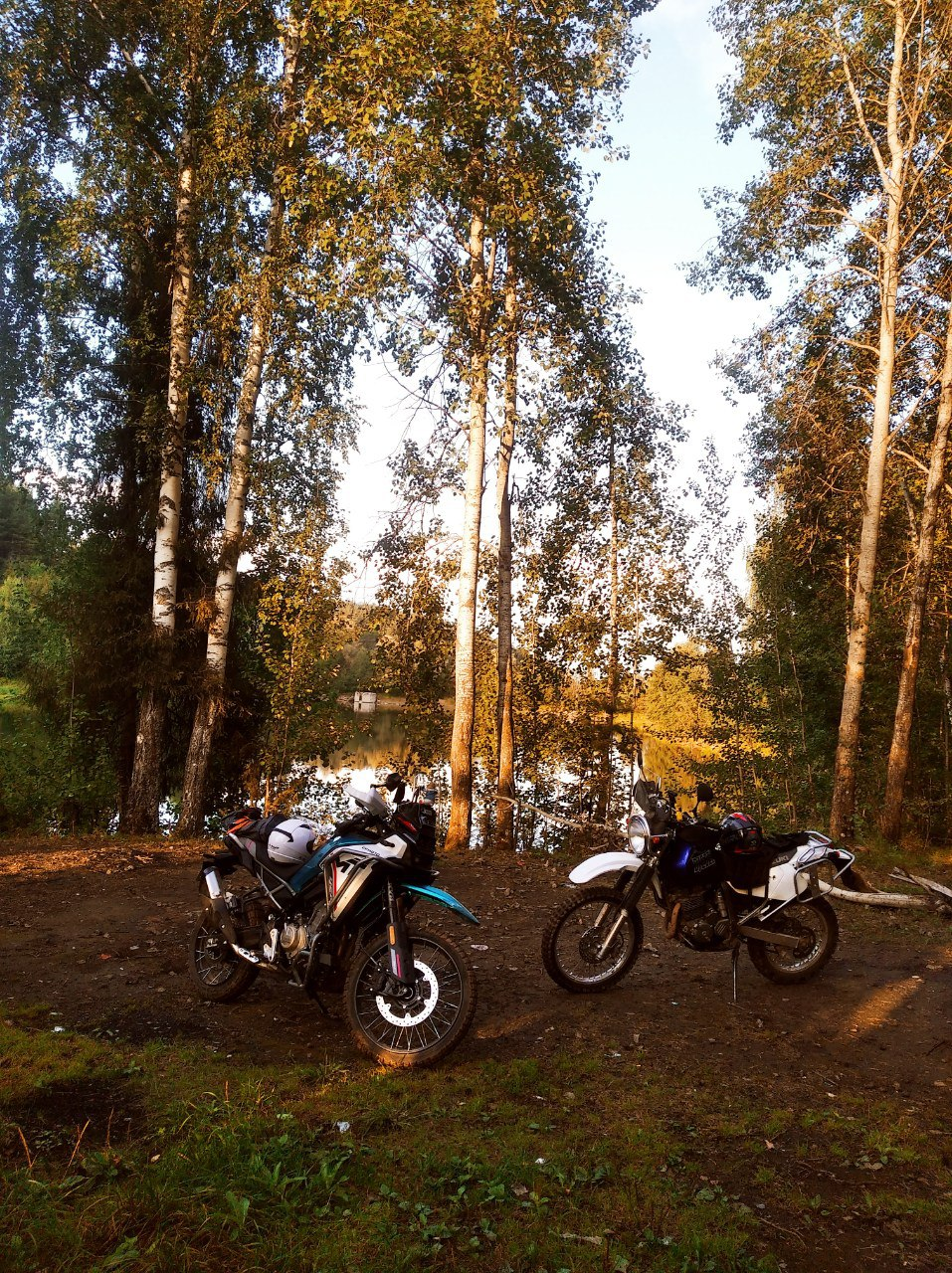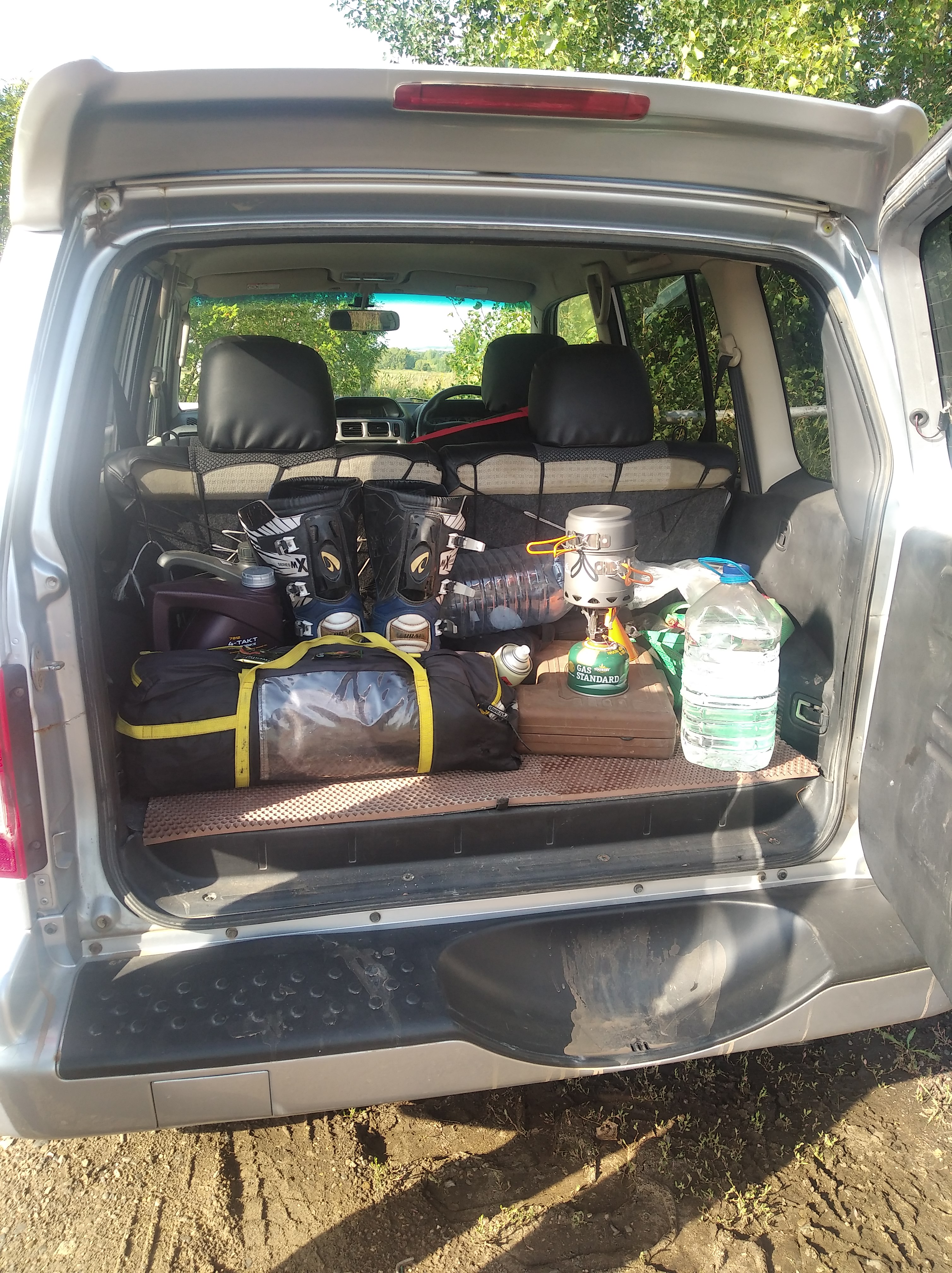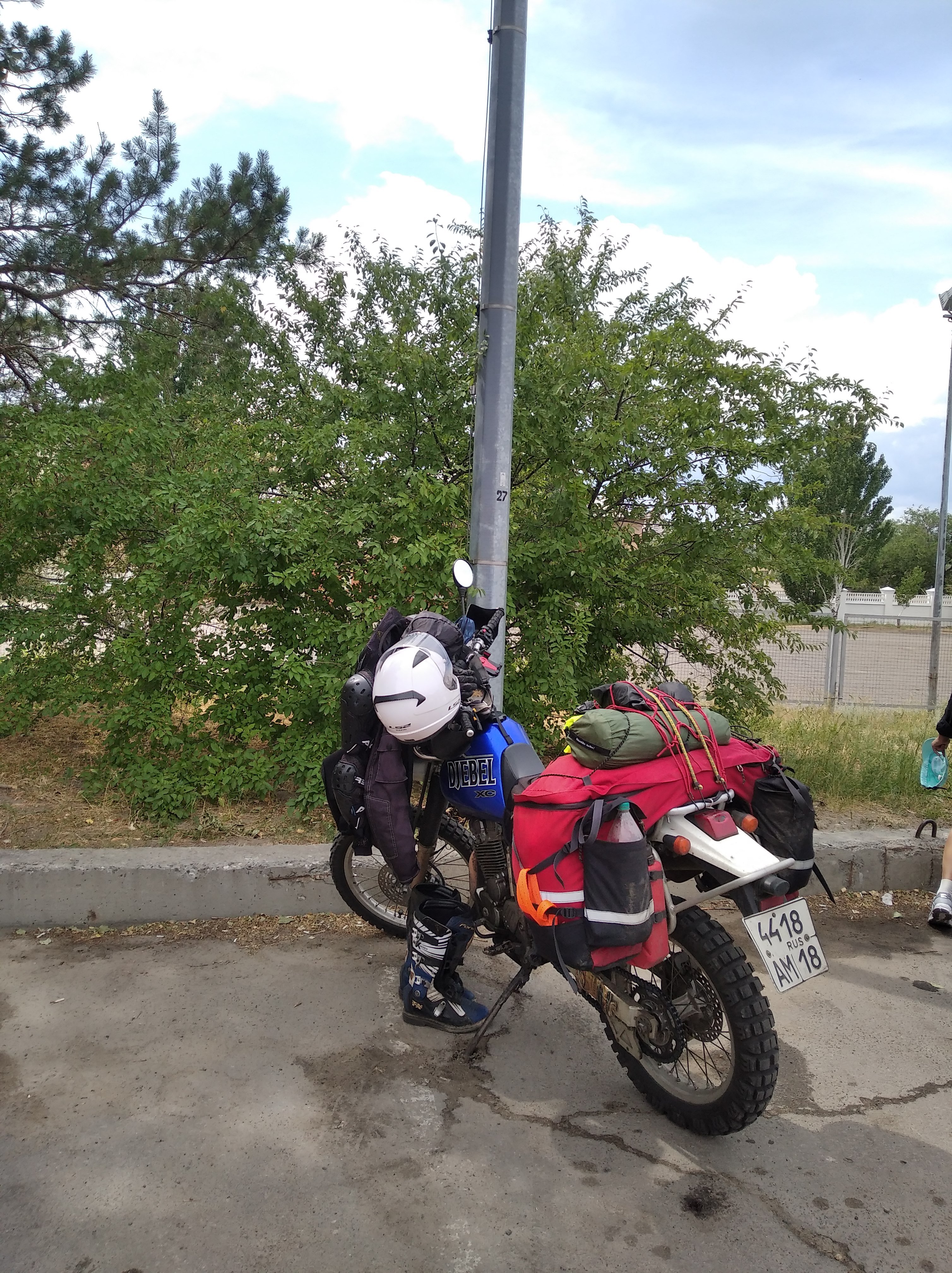 Так, надо что-то срочно думать с багажной системой. Я брал с собой лишь палатку и в сумке одежду + коврик. Так не пойдёт. Хочу купить пластиковые 20л канистры и попробовать закрепить их под углом параллельно глушителю, используя пассажирские подножки, как упоры. Поглядим.