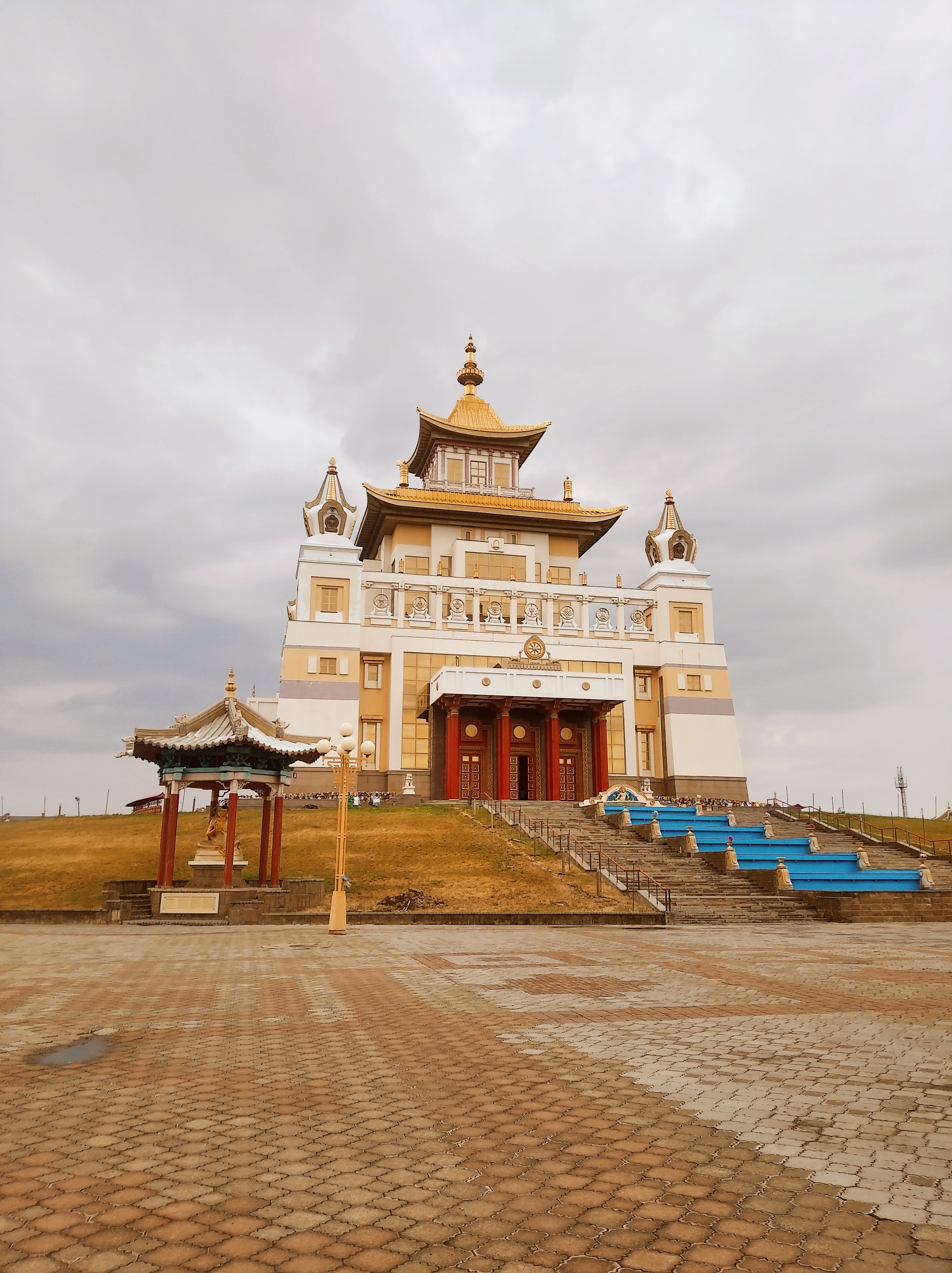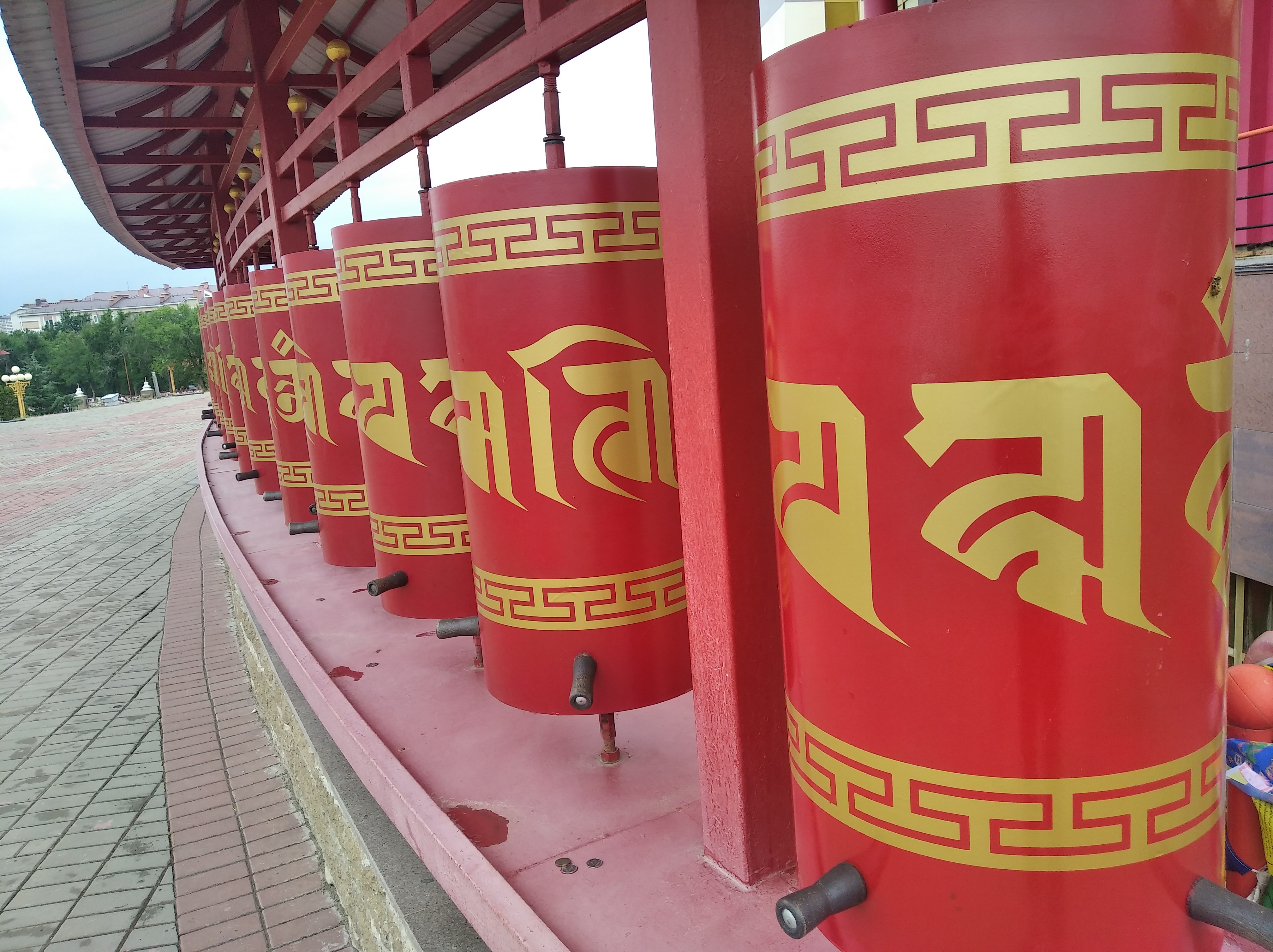 Обязательно, всенепременно потом пошёл дождь. И вкупе с сильным ветром и павшей на 10гр температурой, это тот ещё эстрим. Так я доехал до Элисты и посетил главный Буддийский храм. Это нечто, аноны. По крайней мере для меня. Ни в церкви, ни в синагоге, ни в мечети я не чувствовал подобного спокойствия и внутренней тишины. Прошёлся по всему комплексу, покрутил барабаны, почитал тексты и двинулся дальше. Тут, как и с Мамаевым Курганом мне повезло и светило солнце. Только я собрался и кааак полило. А мне как-то надо выезжать. Телефон не достанешь, ибо замочишь, пока стоишь на светофорах. Инета нет во всей Калмыкии, терминалы не работают, все ругаются. Короче, я вроде спокойный анон, но взбесился от того, что не мог выехать по наитию, лило, как из ведра, РЕКИ коричневой воды на асфальте, которой меня постоянно обдают перестраивающиеся машины. Плюнул, заехал под навес на шиномонтажку успокоиться. И тут приезжает хозяин шиномонтажки - весёлый дед-дагестанец-альбинос. Прикольный такой. Пригласил к себе, угостил кофе, пожелал счастливой дороги и попрощались. Потом вытерлись.