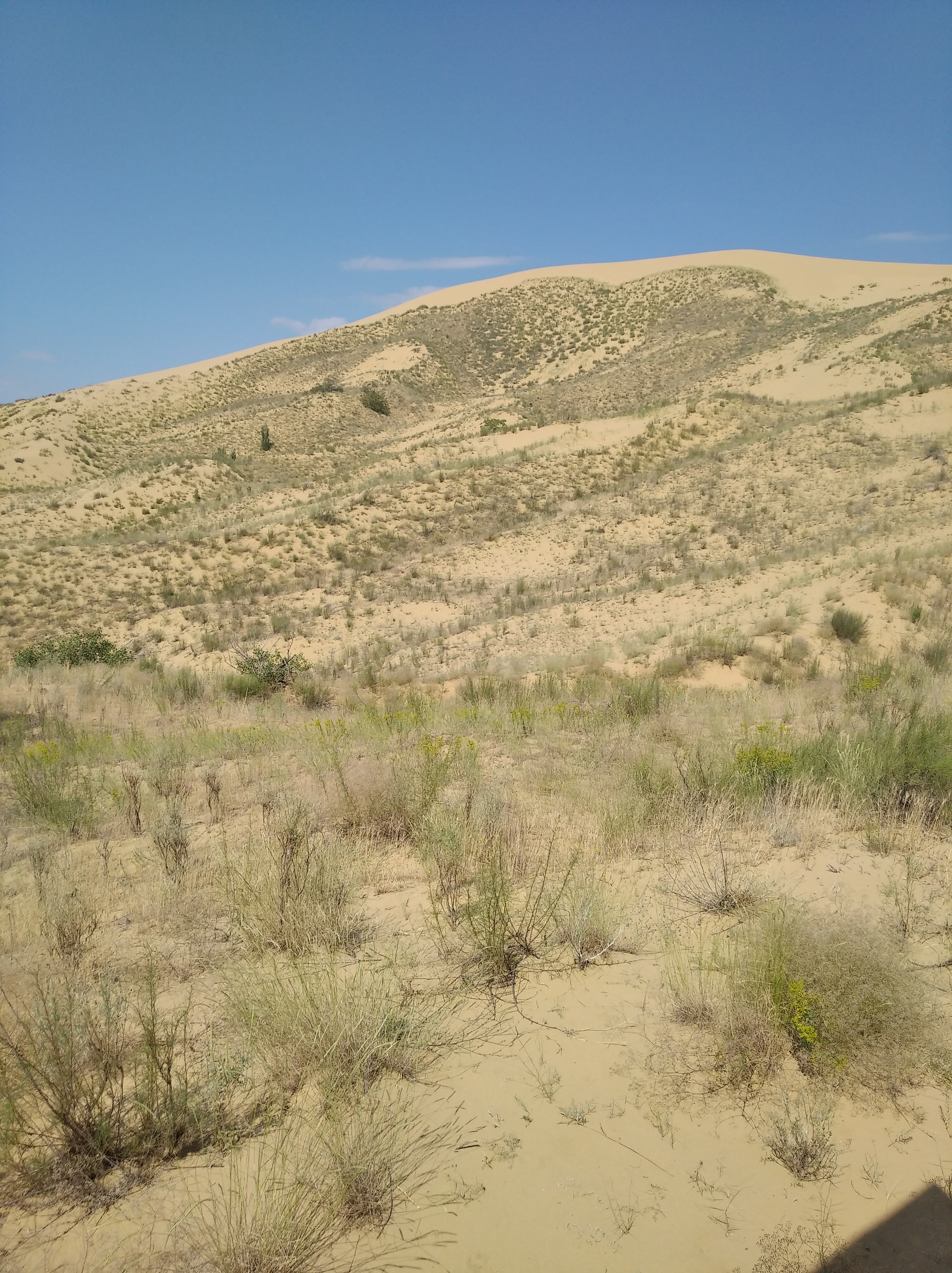 Потому, утром я поехал в офигеннейшее место - бархан Сарыхум. Восхитительная куча песка. Да ещё и огроменная! Метров 150 высотой. Я люблю пустыни, я понял. Забрался туда, там лестница, и походил босиком по пескам. Кааайф, но горячо. Оче. Думал, на жопе скачусь, а фигушки. Он не осыпается так лихо ,как я надеялся. Надо подстилку какую-то.