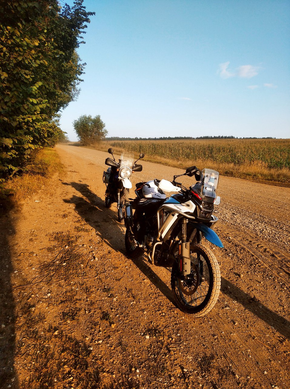 Это получился интересный путь. Оказалось, я приехал в деревню на копание картошки. А я и не знал, хех. Специально проложил маршрут по деревням, ожидая, что будут сухие грунтовки/щебёнки. А они затеяли там ремонт грунтовых дорог, да ещё и дожди прошли накануне, потому оооче разнообразная дорога получилась. Прямо такая, какая случается в путешествиях: асфальт, грейдер, гравий, грязь, мокрая трава, песок, СТИРАЛЬНАЯ ДОСКА.