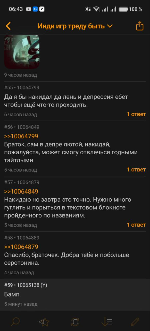 Q. Как быстро перейти из треда назад не закрывая его? A. Либо отключив в настройках закрытие тредов по кнопке назад, либо через удержание кнопки назад, либо закрепив тред через удержание кнопки закрытия треда в боковом меню.