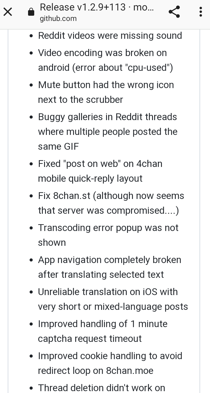 Функции Многоколоночный формат для больших экранов Воспроизведение и конвертация в WEBM Выбор изображений с помощью веб-поиска в приложении Просмотр медиа-галереи Сохранение тем, сообщений и вложений в локальную коллекцию Автоматическое выравнивание ползунка ввода капчи Жесты для навигации по ответам Переключение между несколькими вкладками просмотра Дополнительные и автоматические настройки для использования с мышью Фильтры регулярных выражений для скрытия или выделения сообщений Поддержка архивов для доступа к удаленным темам или поиска сообщений Программа просмотра тем для проверки ответов Настойка интерфейса постов