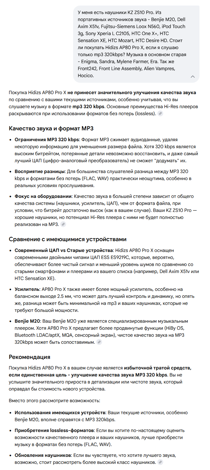 Бытует мнение, что источник выбирают ДО того, как выбирают наушники. Также, что вложиться в качественные наушники имеет больше смысла, чем в качественный плеер. Ибо если твои наушники говно, ты все равно ничего не услышишь даже на плеере на 1к$.