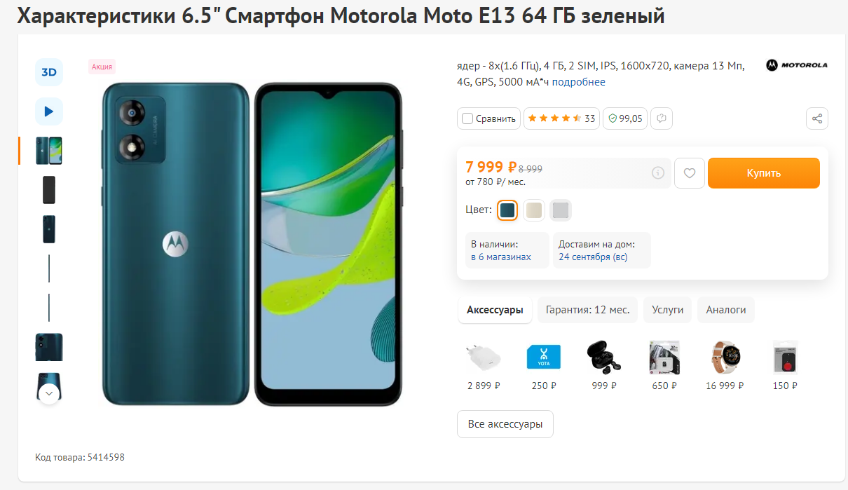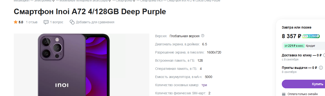 >>2459976 во-первых зачем тебе он на озоне если в билайне дешевле на 500 руб, во-вторых там жалобы на плохой айпиэс и усталость в глазах после него в третьих хуй знает что для тебя лучше. на том же озоне распродажа Вико идёт, дешевле 6к, камеру там за эти деньги хвалят