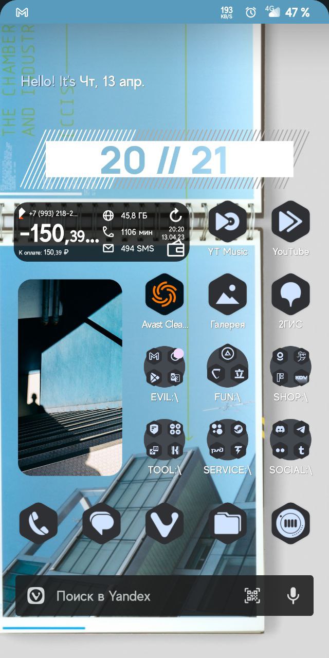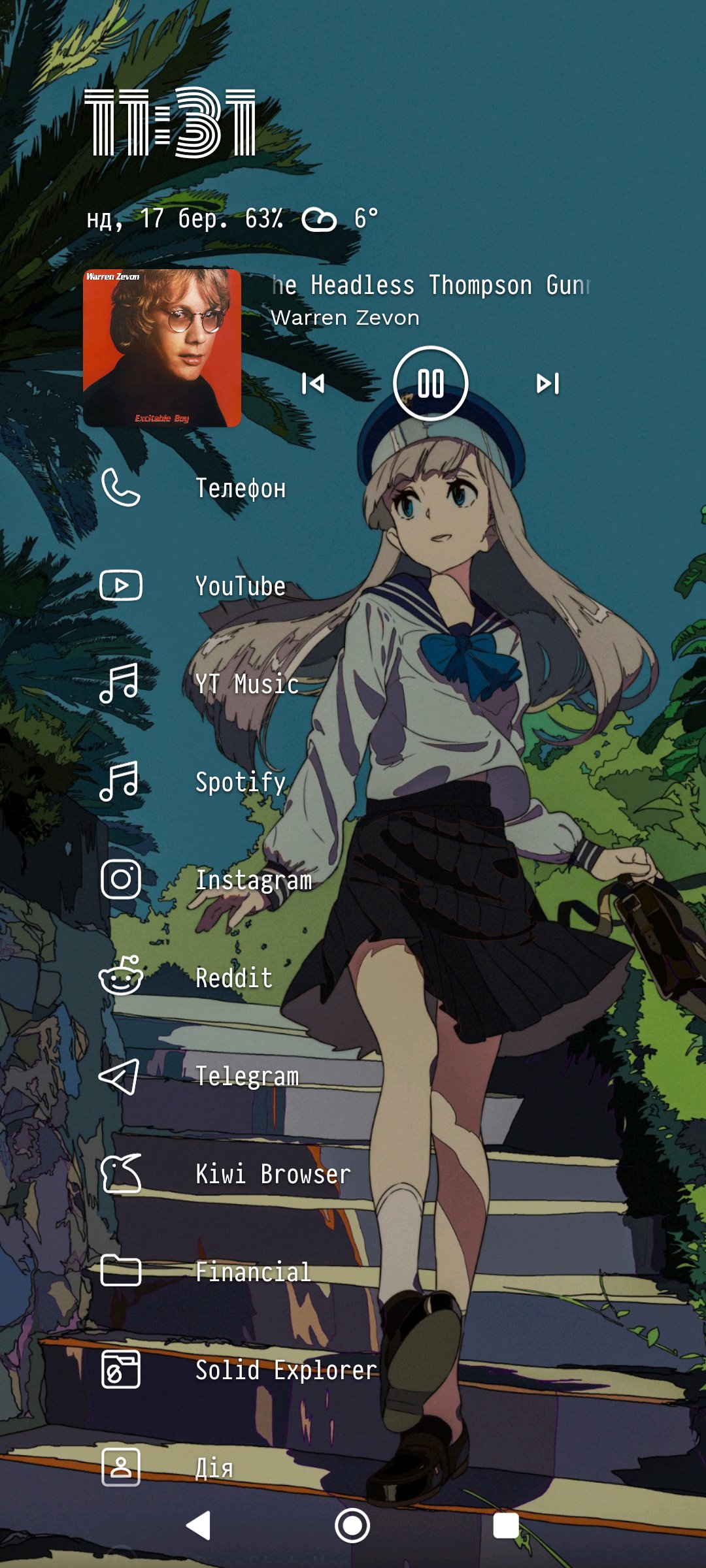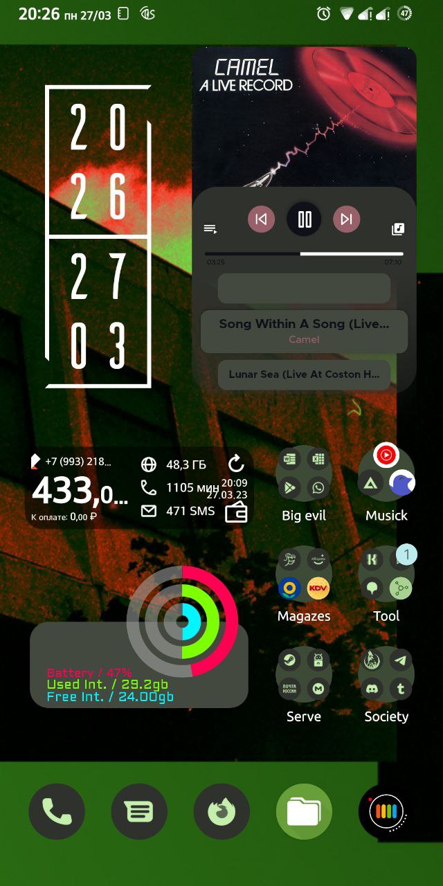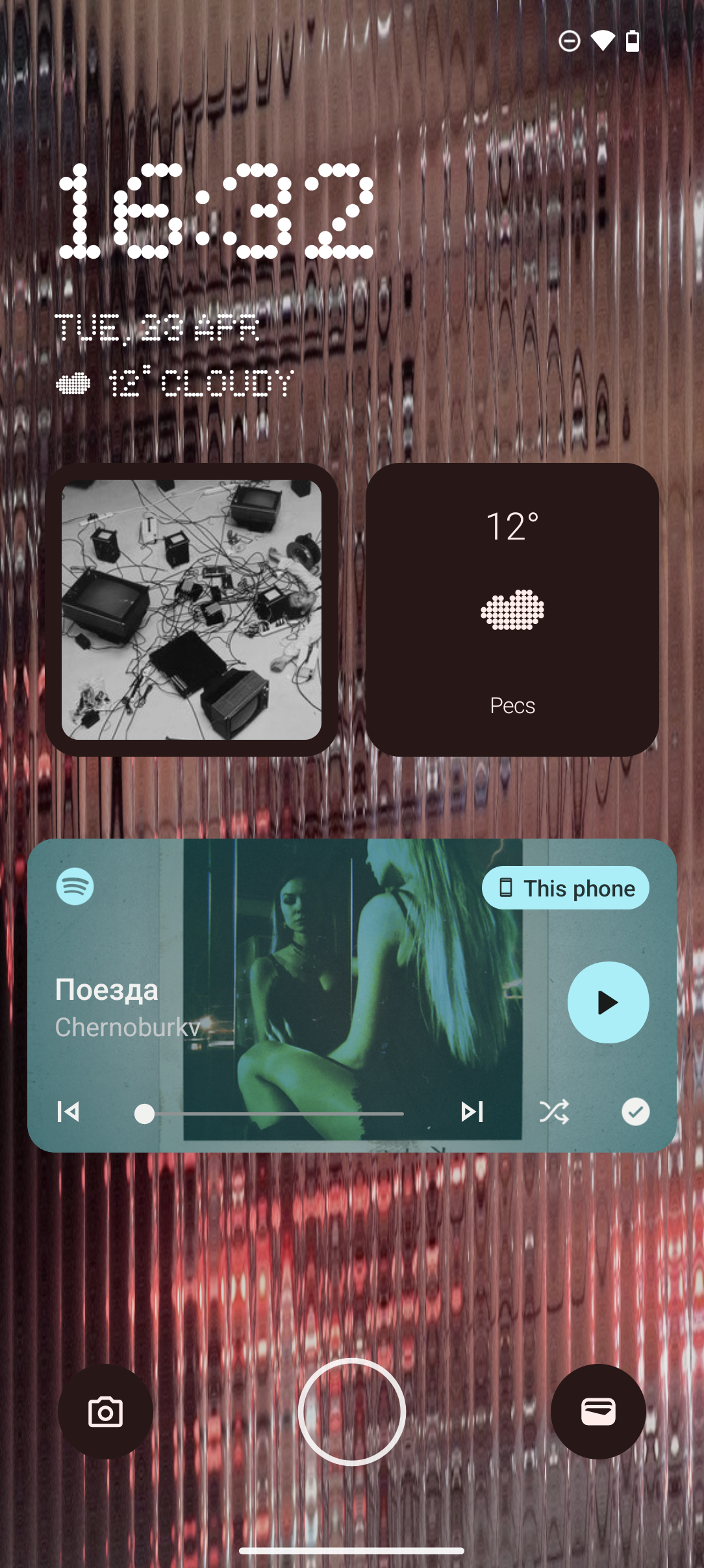 Второй день с нафингом, думаю это финальная настройка, может по необходимости добавлю еще одну строку приложений перед верхними виджетами. Виджет с черно-белыми картинками и виджет для музыки от нафинг это просто ахуй как хорошо. Nothing OS буквально моггает всё.
