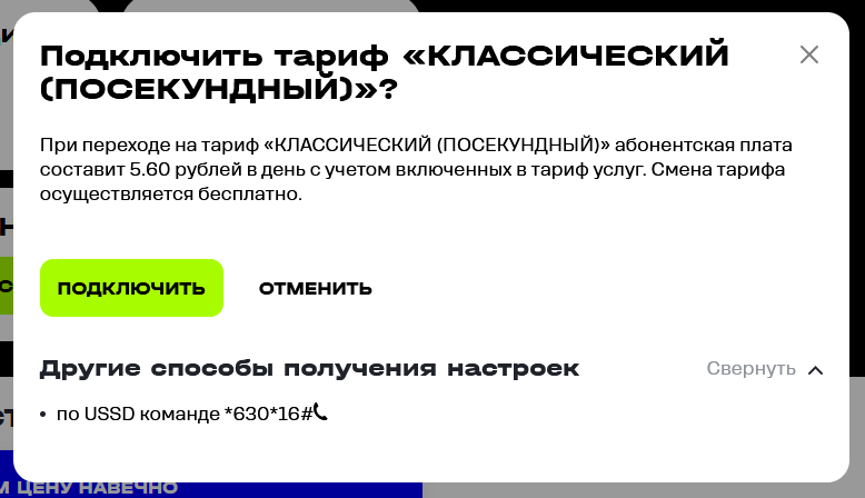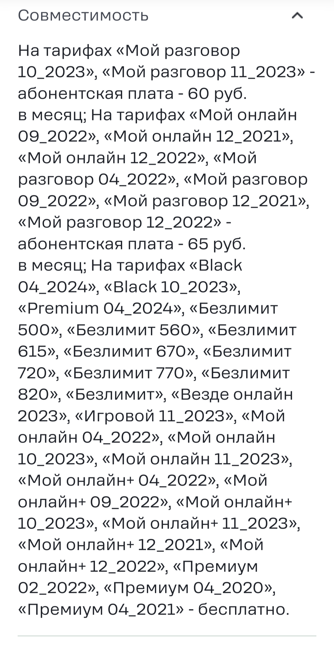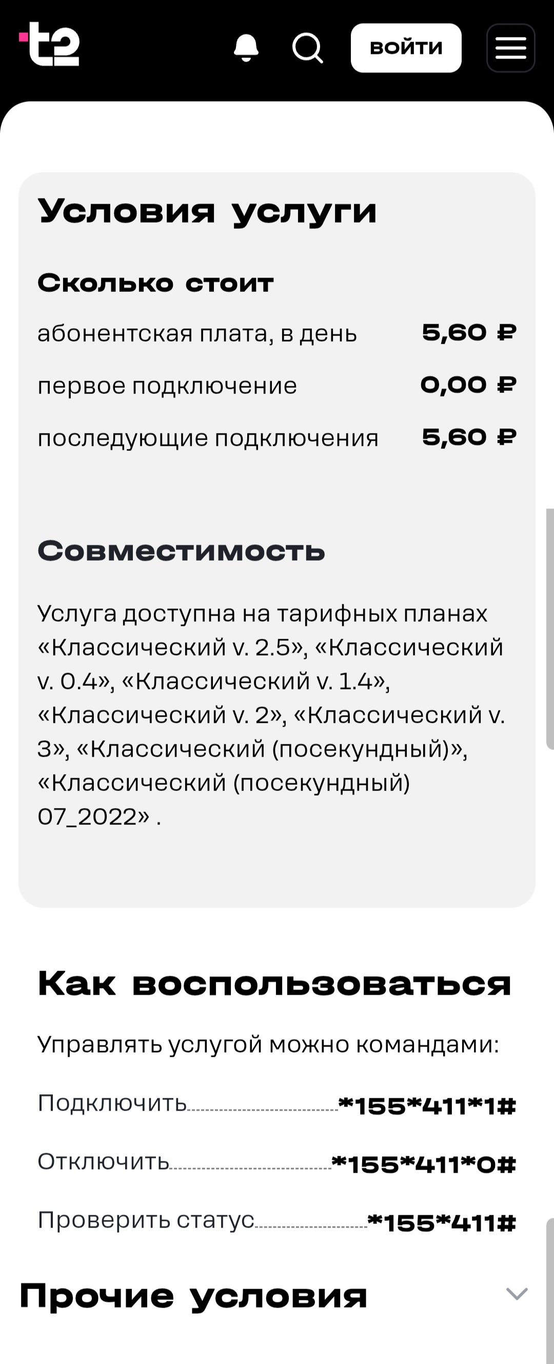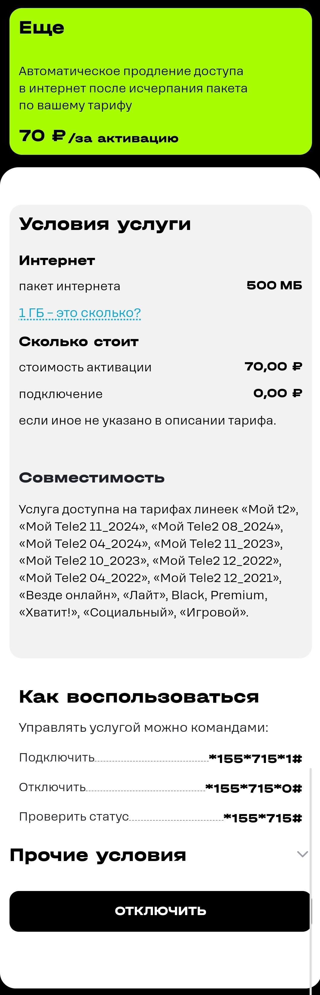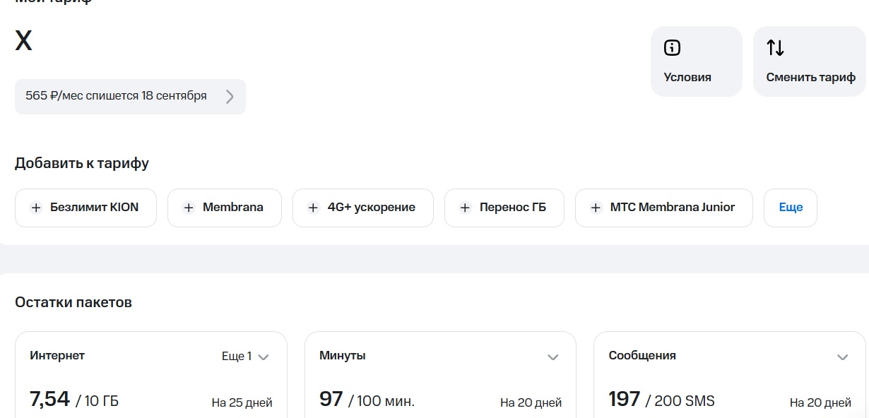 Услуга автоматически отключается при смене тарифа на любой другой тариф, где она недоступна.