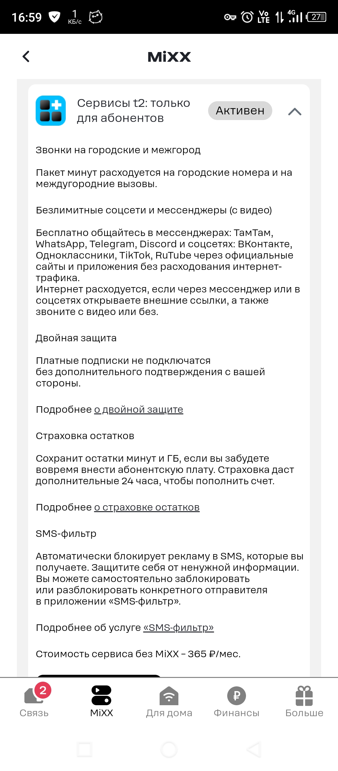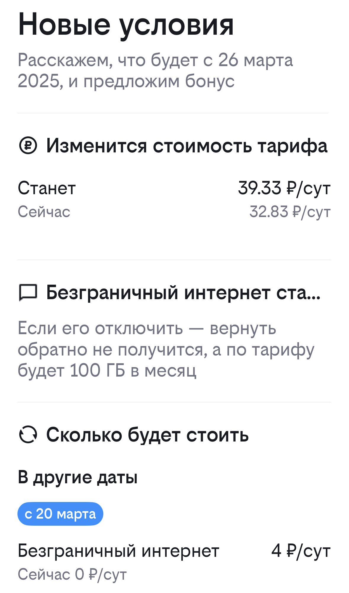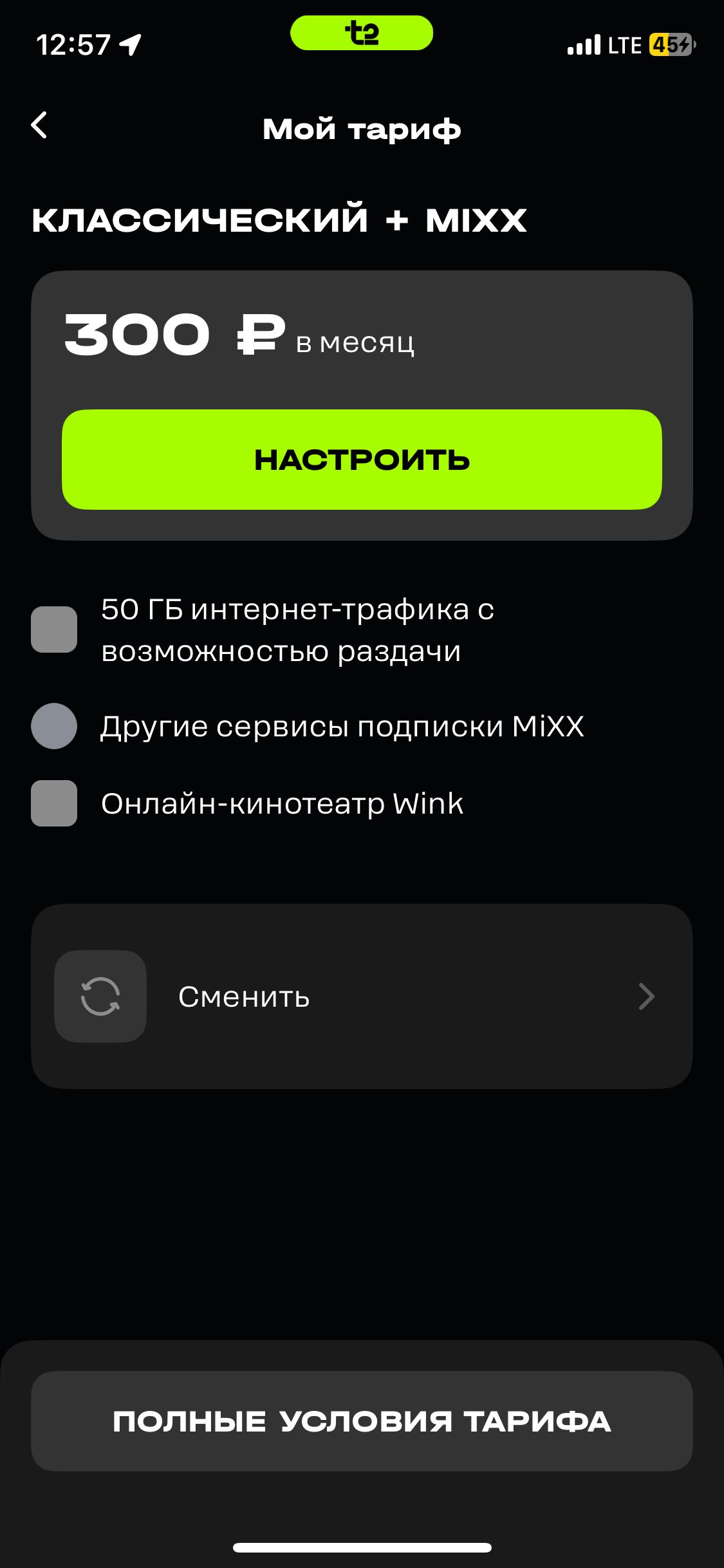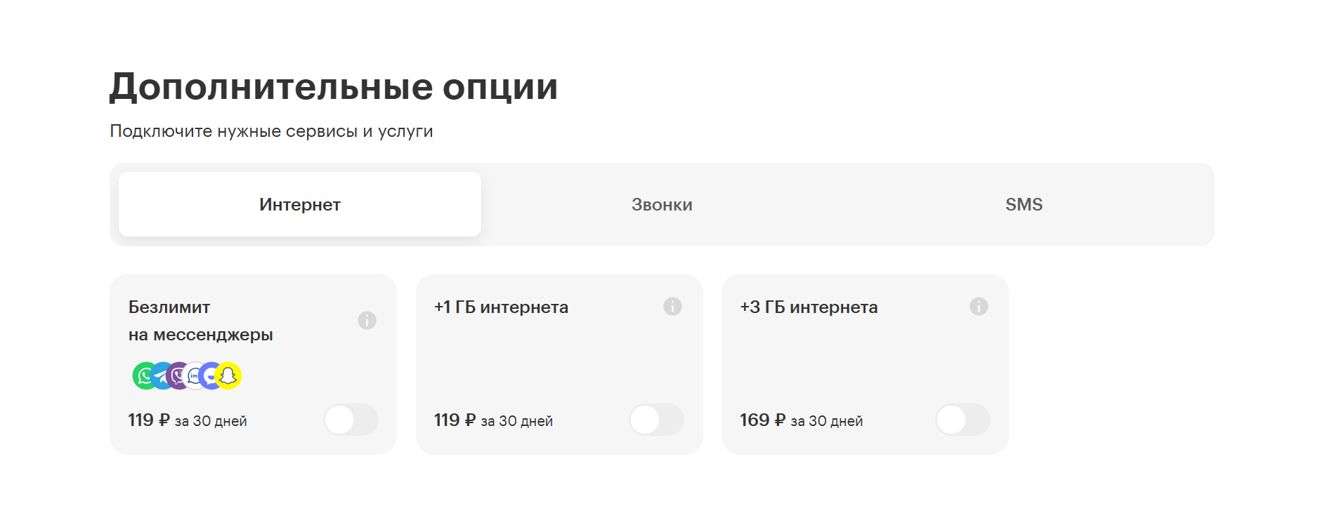 Услуга автоматически отключается при смене тарифа на любой другой тариф, где она недоступна.