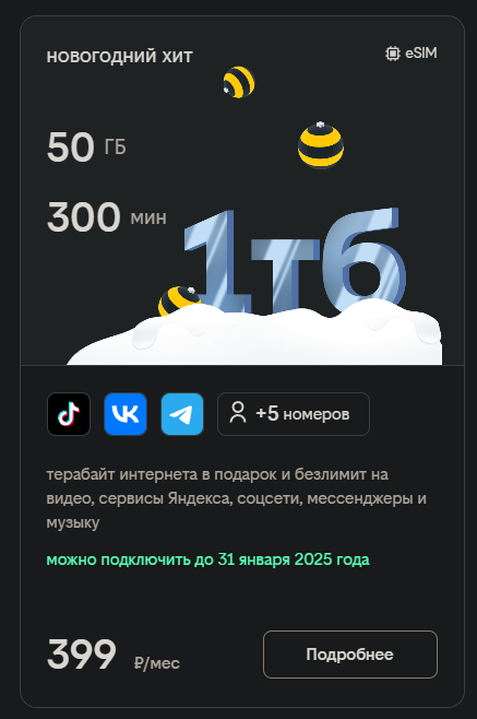 У чем подвох Билайна? Все тарифы полное говно но 500 с чем то рублей, а тариф новогодний где 50 Гб, безлимиты на всякие сервисы и прочее всего лишь 399. Хочу прекратиться - но в чем подвох?