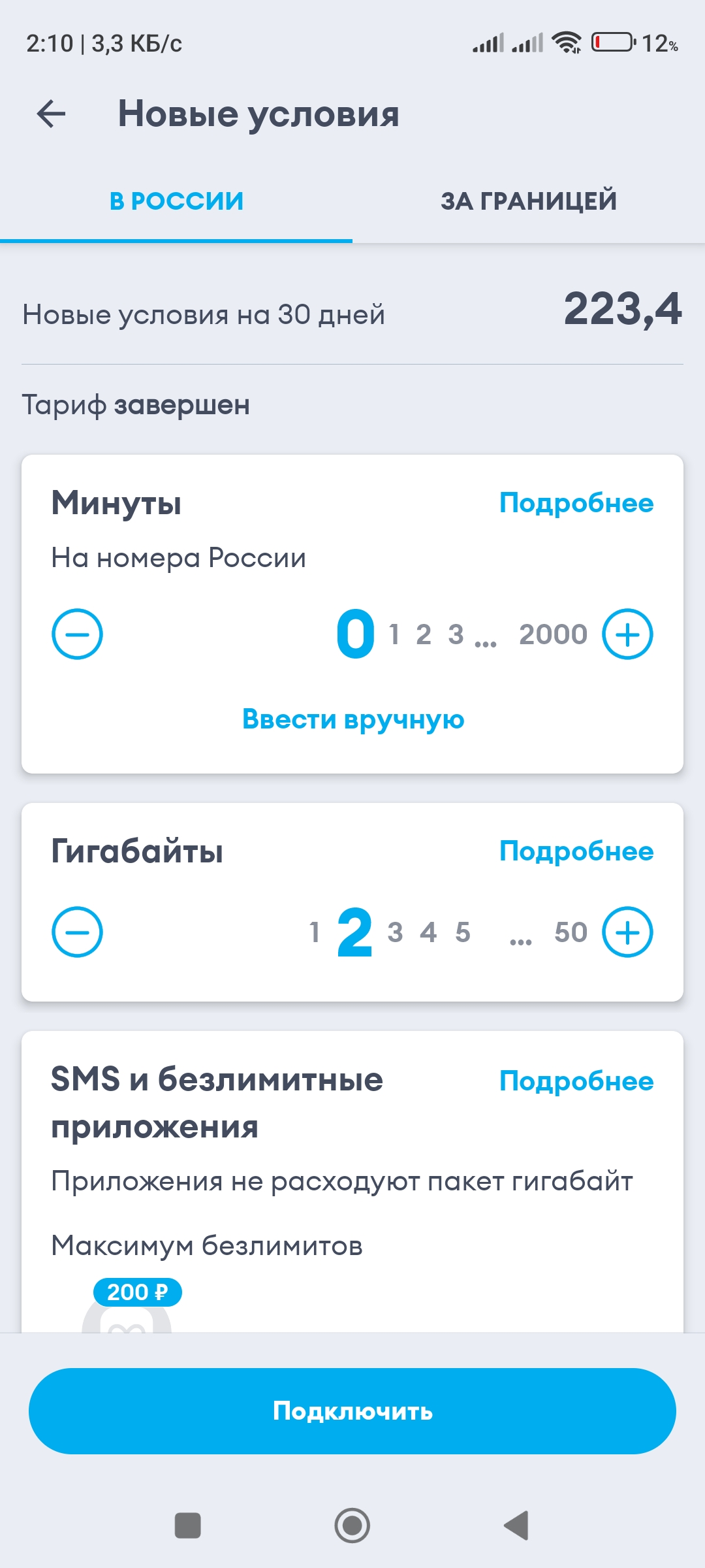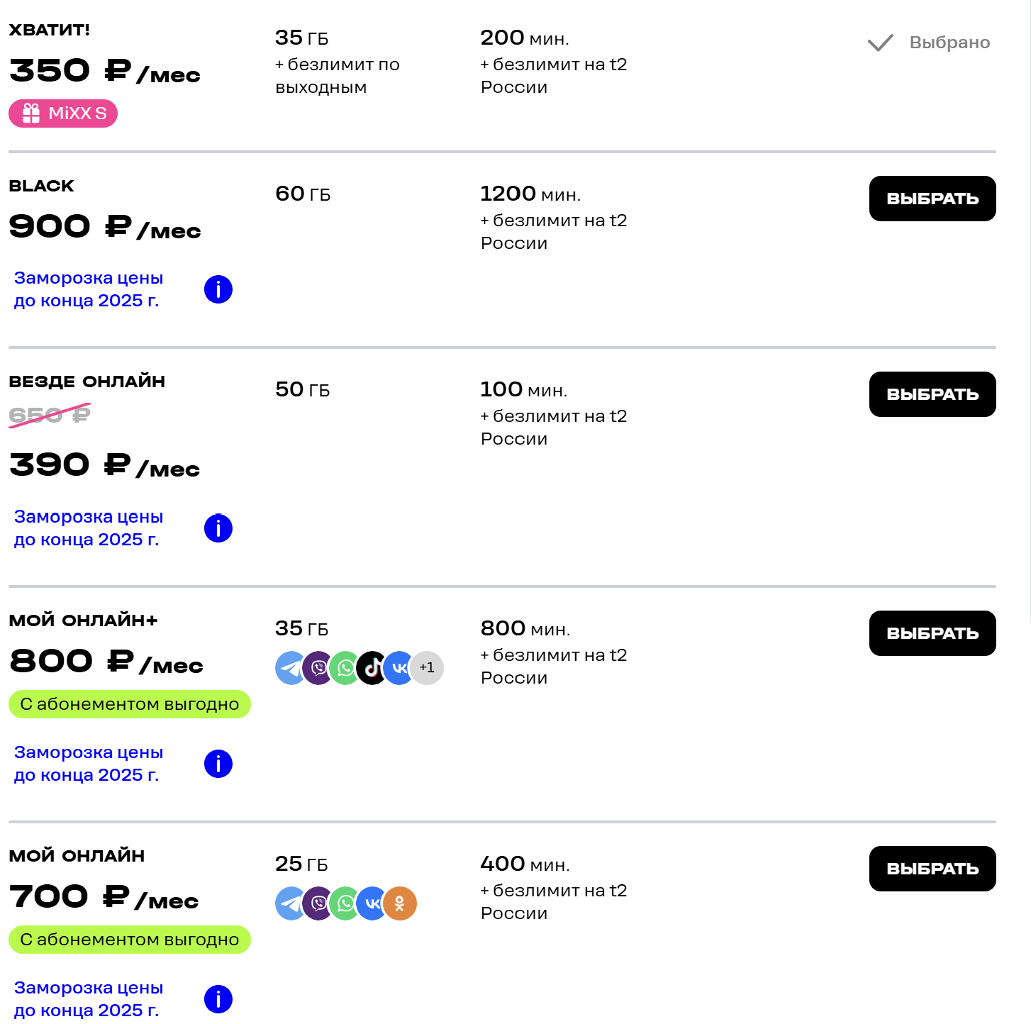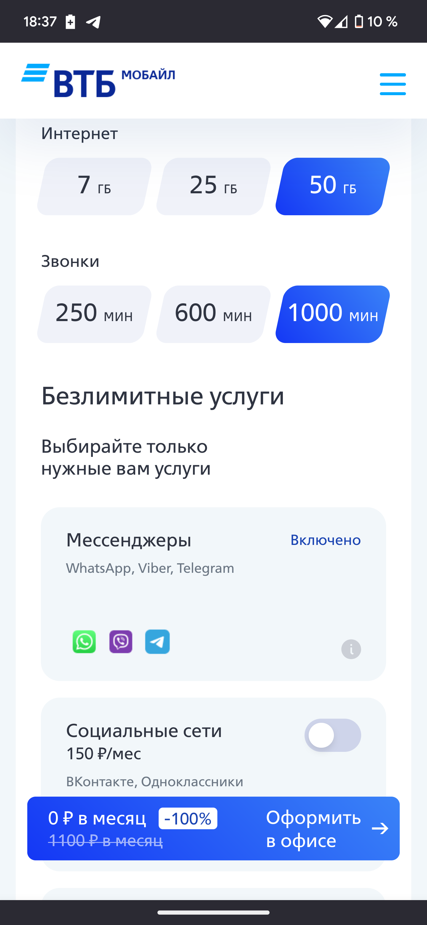 Есть какой то минимальный тариф с безлимитом на WhatsApp?