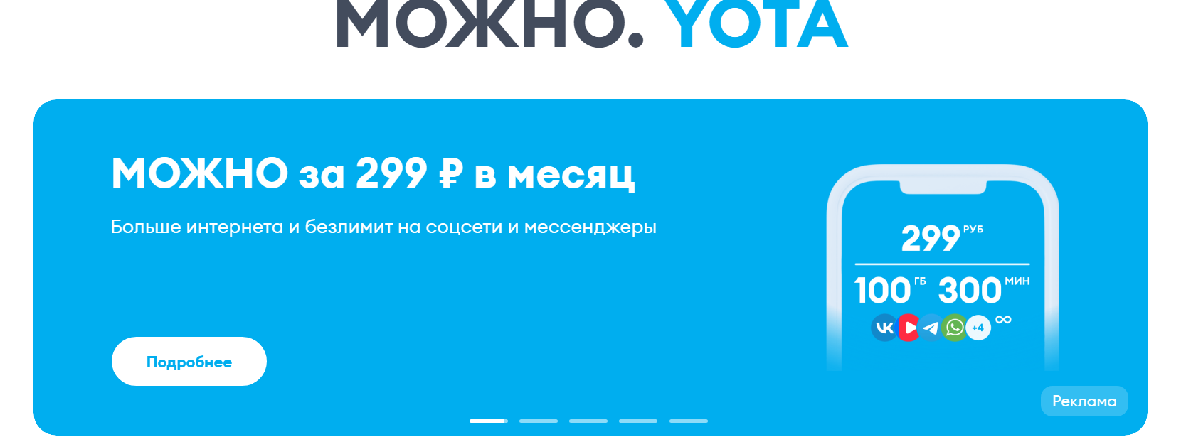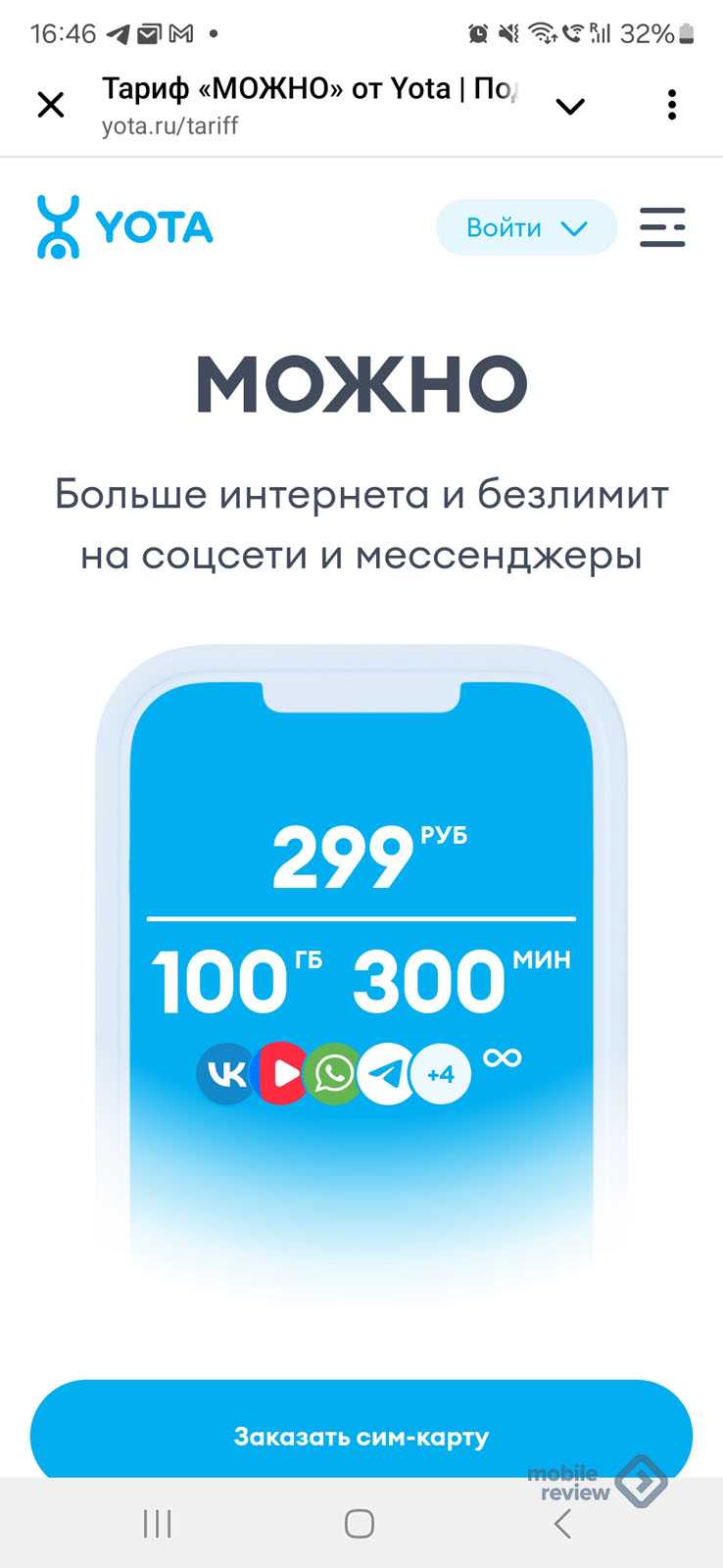 Мой голос за Йоту с Можно 100 гигов 300 минут безлимит на соци за 299р годно.