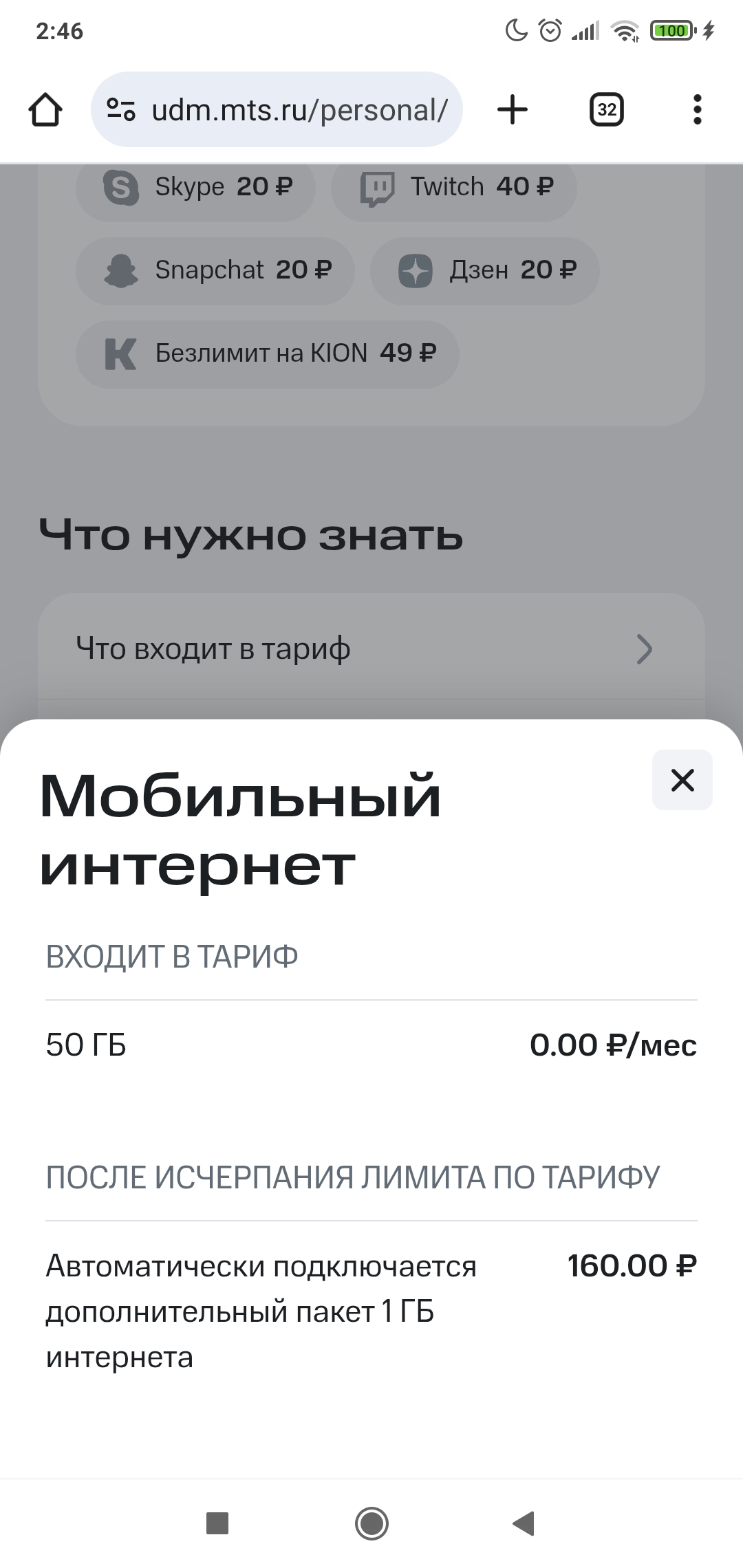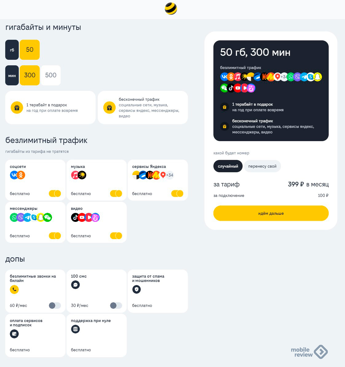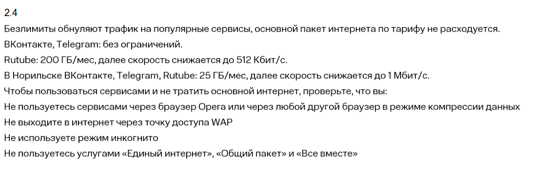 В рамках услуги «Безлимитный интернет» предоставляется безлимитный объем интернет‑трафика на любые сервисы.