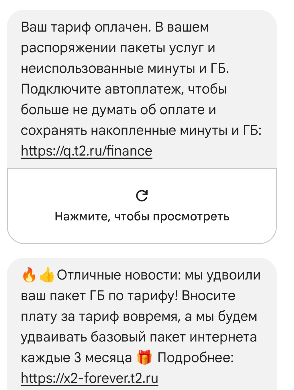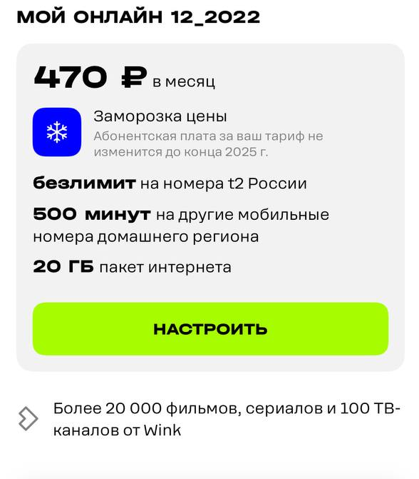 >>2620312 Остаток переносится, не сгорает, если оплатил вовремя. Не растратил 200минут/20гб в этом месяце, в следующем будет 400/40, НО только если оплатил в срок. Если просрал момент оплаты, все сгорает. Один раз просал 100гб. Бывает. >>2620955 Если нужны городские номера, их нет в пакетах у т2. Лучше поищи тарифы у других операторов. Предполагаю, что когда тариф станет архивным, там появится подобная херь. У меня архивный тариф, появилась. >>2621424 >>2621406 Подтверждаю. На теле2/т2 архивные тарифы переименовывают и повышают цены. >>2623228 Скорее всего через год превратится в тыкву, либо архивируют и начнут с ним резвиться.