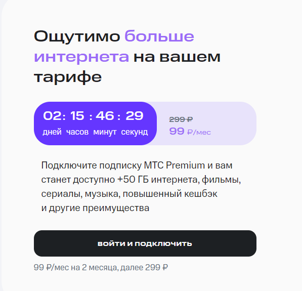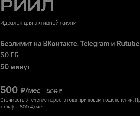 >>2621446 >>2621048 Нашел этот тариф, у меня бля сим-карта с 2017 года +- с безлимитным интернетом, помню начинал с 300 рублей в месяц, сейчас 670 плачу, а нахуя я это делаю, если новый за 300 руб есть? Пиздец, интересно, а условия на старые тарифы улучшают, если подать заявку к другому оператору?