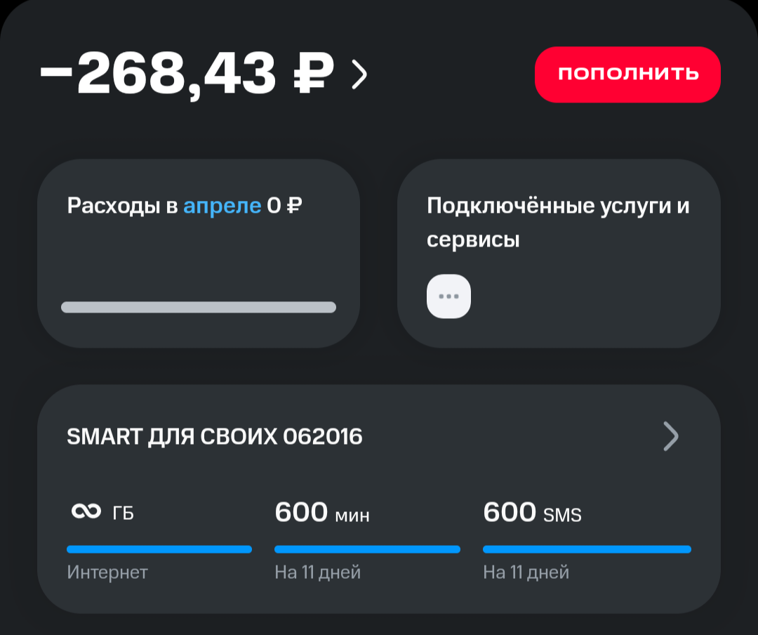 Мог бы конечно и новую симку купить у т2, но устал от них. Из плюсов: для себя могу сказать про отсутствие наеба с подписками. Но и это не точно. У меня семья/друзья тоже на т2 сидят и подтверждали что у них бывало деньги с нихуя улетали. Я хоть и не терял, но подписки мониторил через приложение. Из минусов? в какой то момент они решили, что было бы забавно из пакета минут убрать городские и продавать отдельной услугой. Пидоры.