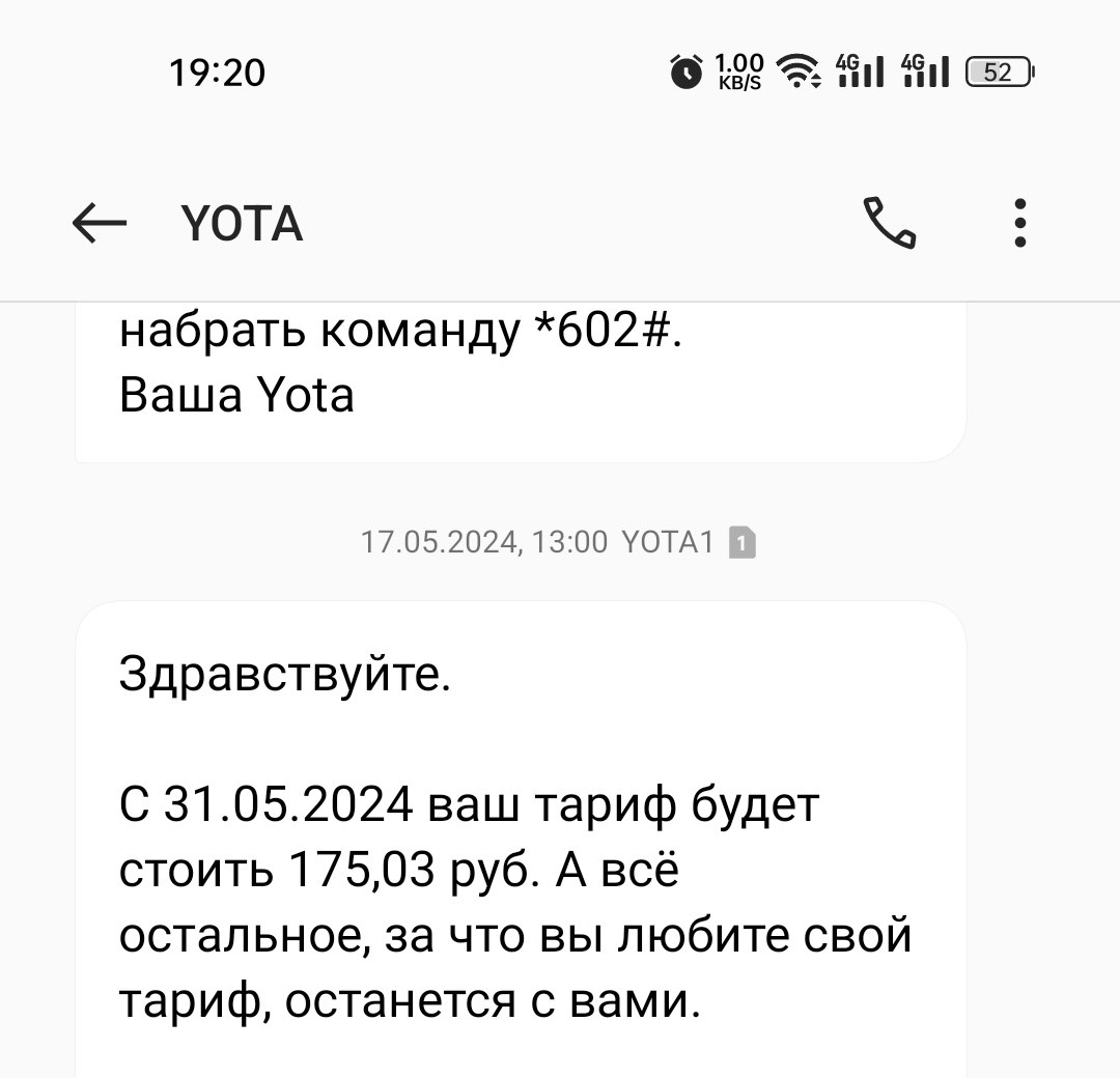 Последний день января. Стоит переходить на можно йоты? Есть многолетний мегафон, та же контора по сути, только что повысил цену, теперь 1к за 600 минут и 20гб инета + за что-то раньше дали бонус к тарифу - безлимитный интернет. Обычно используется как раз почти 20гб в месяц. Похожий из актуальных тарифов - 20гб + 400 минут за 850р.