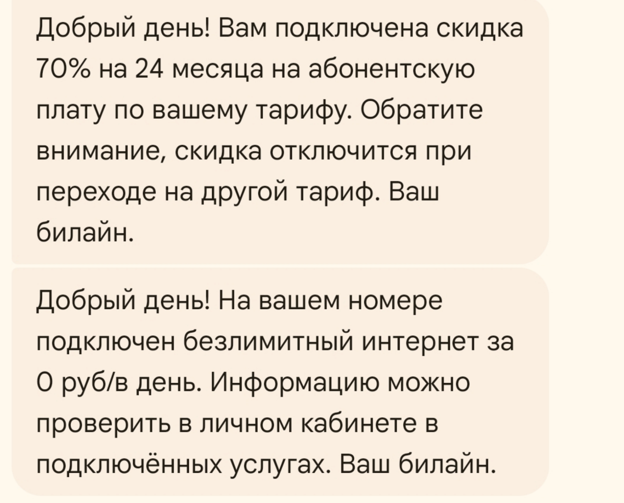 >>2626084 Мне тоже приходило смс о понятии стоимости тарифа со 100 до 120 р. В смс, хотя у меня тариф для всяких устройств, и эту смс я бы не увидел. Успел отключить до повышения.