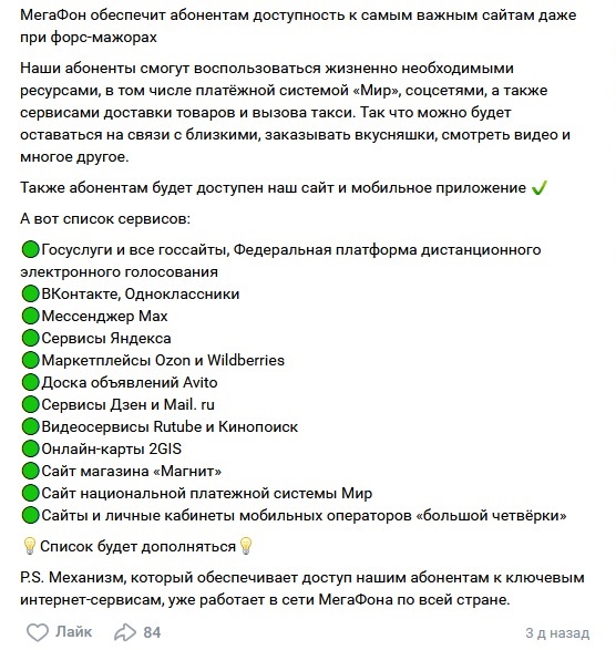 "Белые списочки" заработали. Теперь при глушилках работают вк, яндекс, озон и даже рутуб. Но в Магнит и Авито, которые были анонсированы, что-то не заходит. Госуслуги и мейл ру тоже. Из опсосовских сайтов только МТС живой. В общем, как обычно, всё через жопу. Но таксисты и доставщики жральни Яндекса могут теперь спокойно работать.