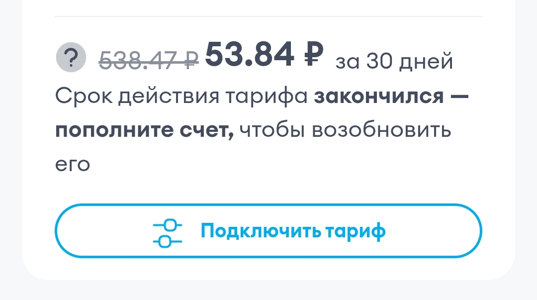 >>2632574 50. Я три месяца не платил, т.к. не нуждаюсь. Баланс был околонулёвый, затем я положил деньги, но меньшую сумму, необходимую для уплаты тарифа. И сегодня пидарасы внезапно «предоставили» мне нахуй не нужный оверпрайс. Мне казалось, что эта услуга инициируется только вручную, поэтому не ожидал такой подляны.