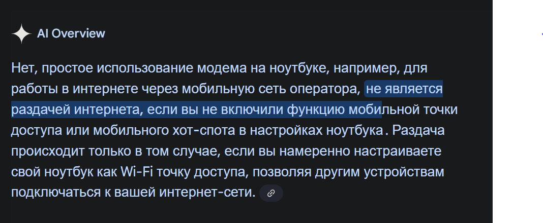 Аноны, подключился к сбермобайл с их 2025гб пару дней назад, и возник вопрос. Хочу ради интереса раздать инет со смартфона на ноут (через точку доступа wifi, либо по кабелю), как на это отреагирует сбермобайл? Будет ли блочить, резать скорость, мб начнет сразу снимать деньги за подобное? В их личном кабинете ничего про раздачу (разрешено/запрещено) не указано, в опциях "раздача интернета" (хоть платная, хоть бесплатная) тоже отсутствует.