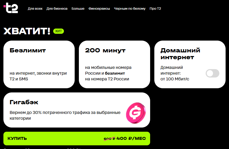 Второе место Т2 Хватит за 350р, но там не всё так сладко, как у Йоты. Все же безлимит по выходным это блядь для каких то ультро нищих заводчан без домашнего интернета и пеки. Нах мне в выхи в тельбон пялится, если я могу на большом экране зависнуть? Ну и Йота=Мегафон, так что как бы и Меги этот тариф в зачет, чисто от них не увидел.