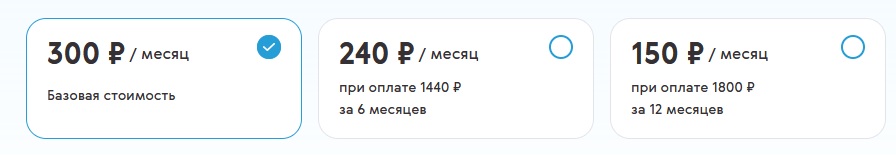 Первые 30 дней - 2.17 руб./день, далее - 65 руб. за 30 дней с учётом скидки на 3 месяца, далее скидка 75%.