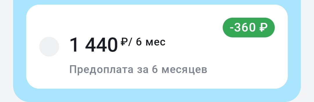 >>2685412 Не понимаю почему ты порвался в треде о тарифах. При следующем списании я снова оплачу за n месяцев вперёд со скидкой, а не по базовой стоимости. А насчёт, комиссии, я бы её и не заметил если бы не одно но. Мегафон просит оплатить 605 рублей, ты оплачиваешь и остаёшься в минусе в самый неподходящий момент. Могли бы и плашку повесить с предупреждением что сбер такой плохой мешает деньги брать. Уважаю твоё мнение, но 1 процент это мой процент из моего кармана. Почему-то гпб так со мной не поступил. Ну а через год никто мне не мешает выбрать очередного оператора, если там условия будут выгоднее. Обнимаю и оставляю тебя в треде меня обсирать.