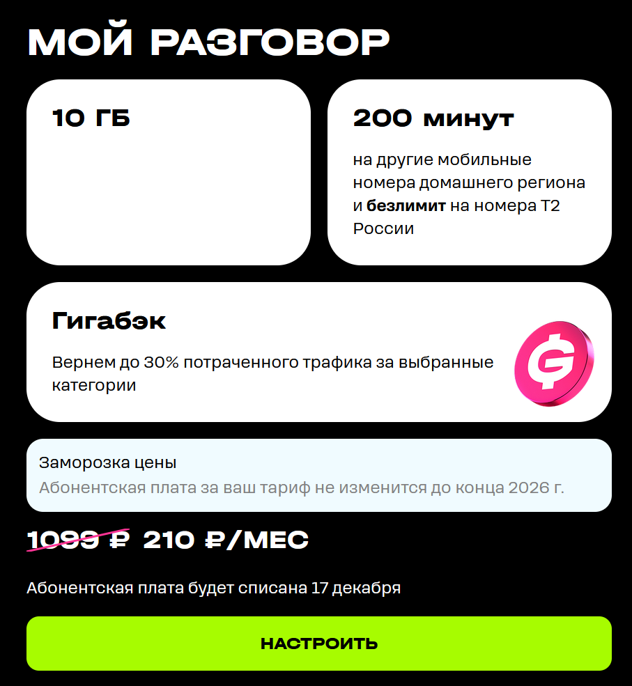 >>2692939 >У меня на теле2 блэк за 950 руб с 50 гб и 1000 минут.