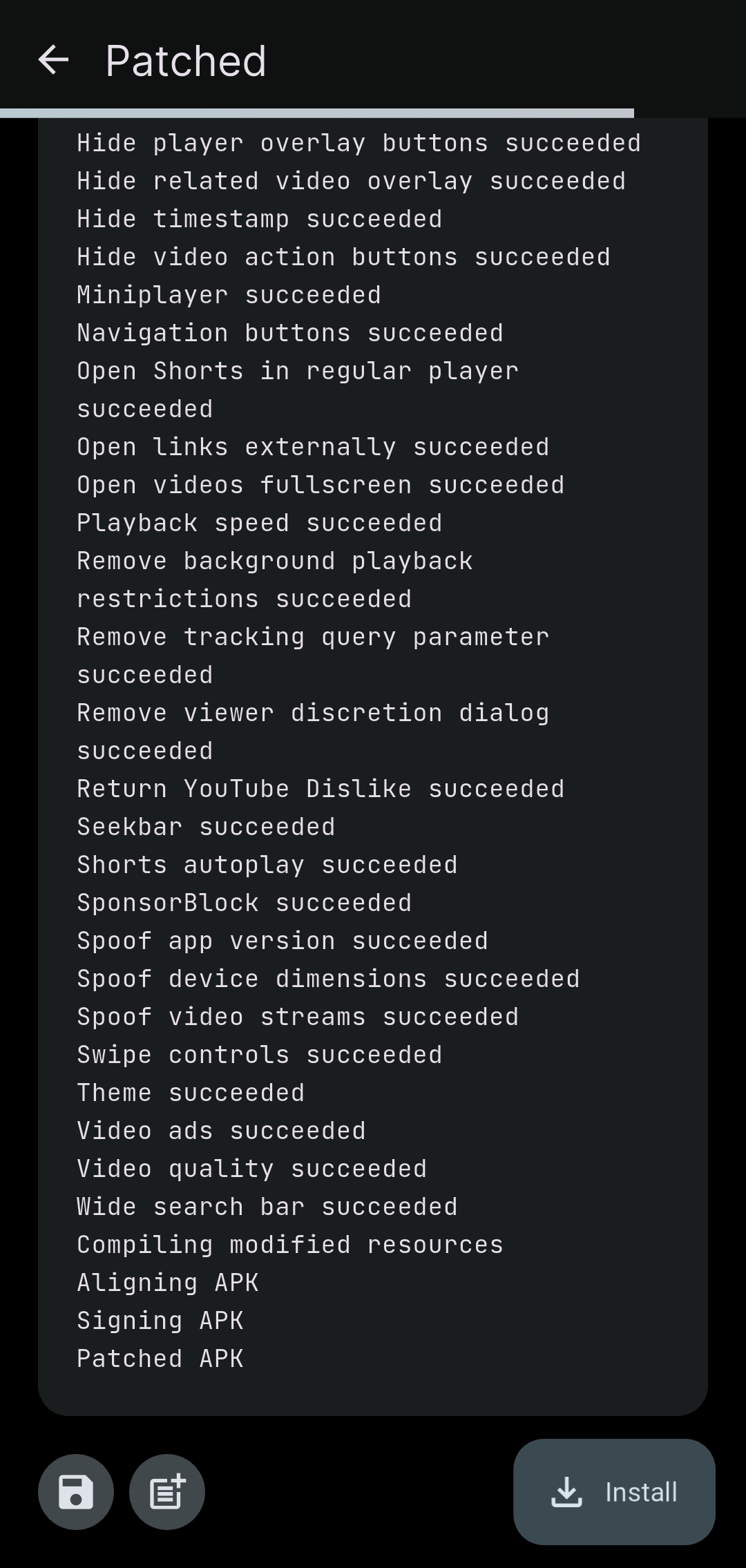 >>2608355 >>2608385 ReVanced https://github.com/revanced В ReVanced Manager пихуешь apk ютьюба с apkmirror.com или apkpure.net. Патчишь и устанавливаешь, не снимая свитера выходя из менеджера. ??? PROFIT!