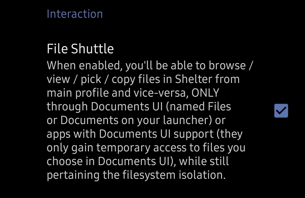 >>2666239 Shelter – не самый удобный инструмент, потому что он создаёт рабочий профиль (Work profile) в который можно только устанавливать apk и клонировать приложения из основного профиля, но сука файлы перекидывать между профилями невозможно! Но я смог найти хитровыебанный способ это сделать: В ОСНОВНОМ ПРОФИЛЕ 1) Берём любой apk файл, меняем расширение на zip и распаковываем его в любую папку; 2) Берём файлы которые хотим перекинуть в наш рабочий профиль (фото, документы, архивы – не важно) и засовываем в какую-нибудь папку того самого распакованного zip (допустим в lib/arm64-v8a/); 3) Архивируем это всё в zip и меняем расширение на apk; 4) Меняем цифровую подпись нашего apk на testkey с помощью специальных программ (я использовал приложение Apktool M); 5) С помощью Shelter устанавливаем наш apk с засунутыми в него файлами в рабочий профиль; В РАБОЧЕМ ПРОФИЛЕ 6) Достаём файл .apk из нашего установленного приложения (например с помощью приложения Apk Extractor); 7) Переименовываем apk на zip, распаковываем в любую папку и достаём наши файлы. Это ебать как не удобно, но других способов я не нашёл так как рабочий профиль не видит карту памяти, так как не может её монтировать и общих папок с основным профилем он не имеет (в отличии от пользователей, у которых есть общая папка /Android/obb/, через которую можно перекидывать файлы между пользователями).