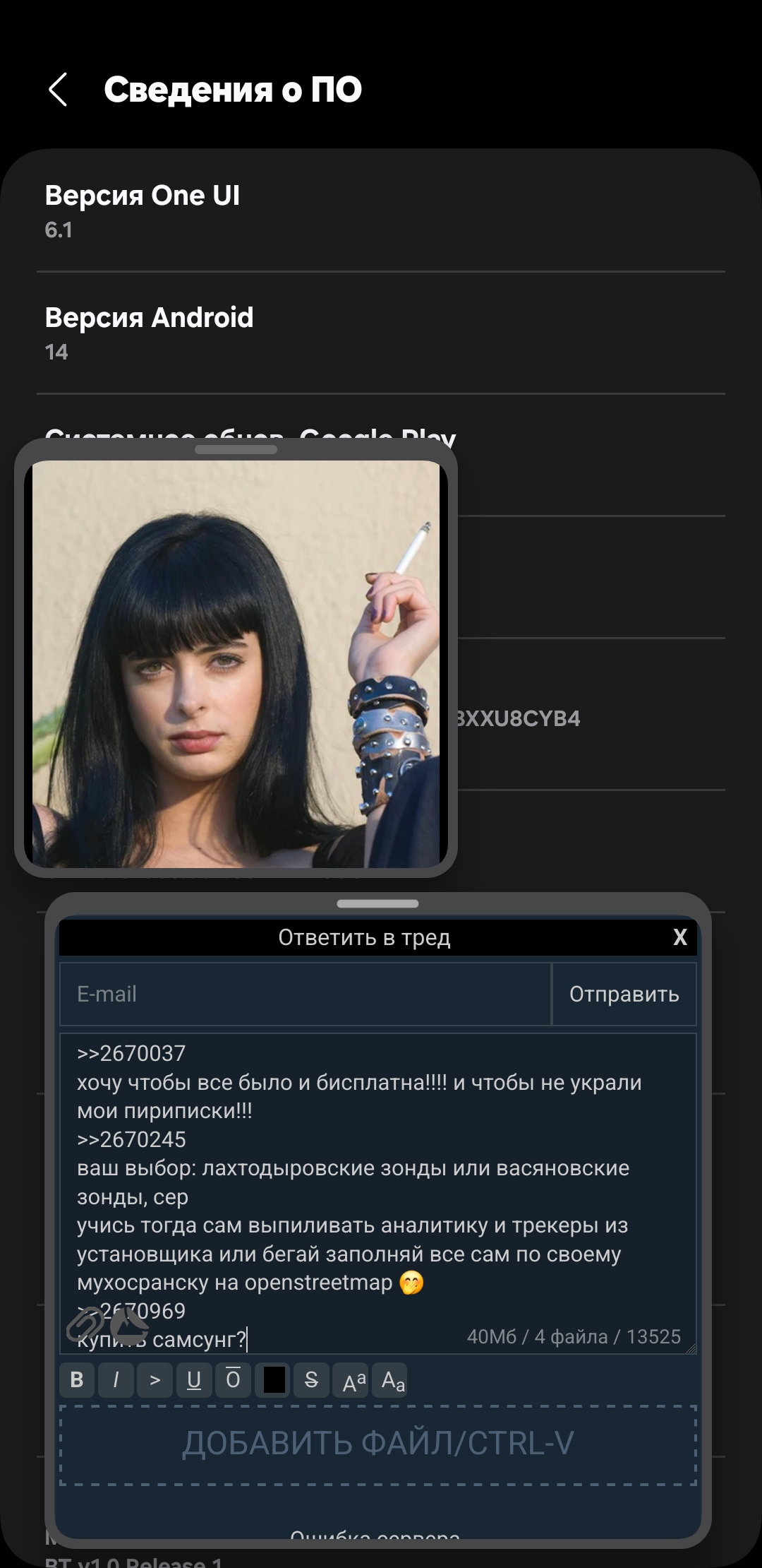 >>2608111 → Эти блокировки связи сейчас с нами в одной комнате? Аноним 11/11/24 Пнд 23:36:14 № 2608114 1001 Анонсы, прошу помочь, я уже заебался Вдруг откуда ни возьмись появились проблемы в 2 приложениях, то ли разрабы накрутили очередной великий апдейт, то ли мобила чудит, я уже не знаю Я извиняюсь если вопросы уровня 'научите бабку телефоном пользоваться', но я реально не понимаю