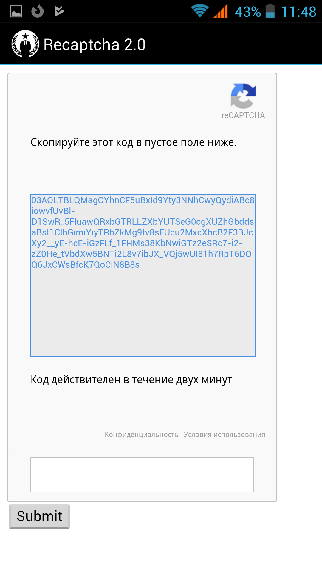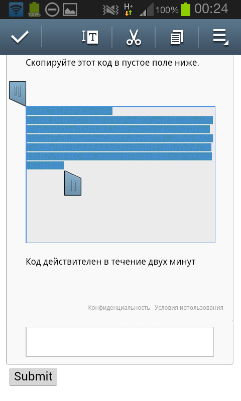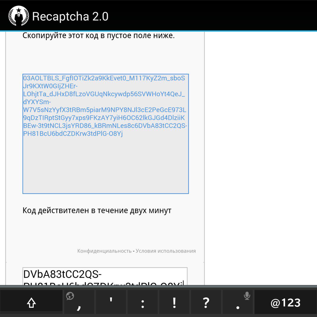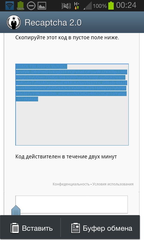 Анон, у меня рекапча стала требовать скопировать какой-то кусок кода в поле ниже, я пальцем тычу, а он, сука, даже не предлагает что-то копировать. Шо делать?