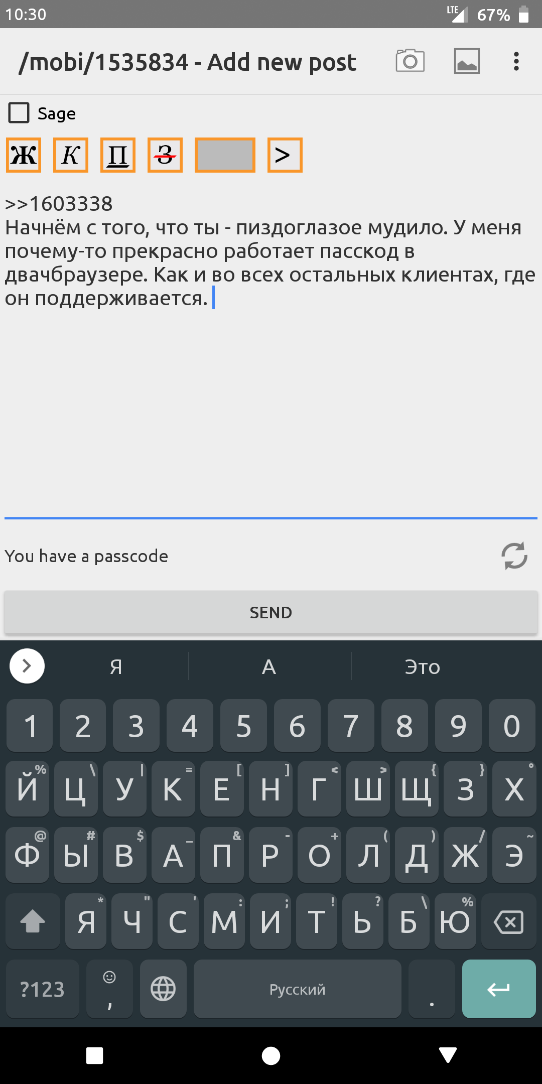 Не могу постить. Ни через вафлю, ни через мобильный интернет. Гуглокапчу ввожу, получаю уведомление, что сообщение отправленор, но сообщение не появляется в треде.