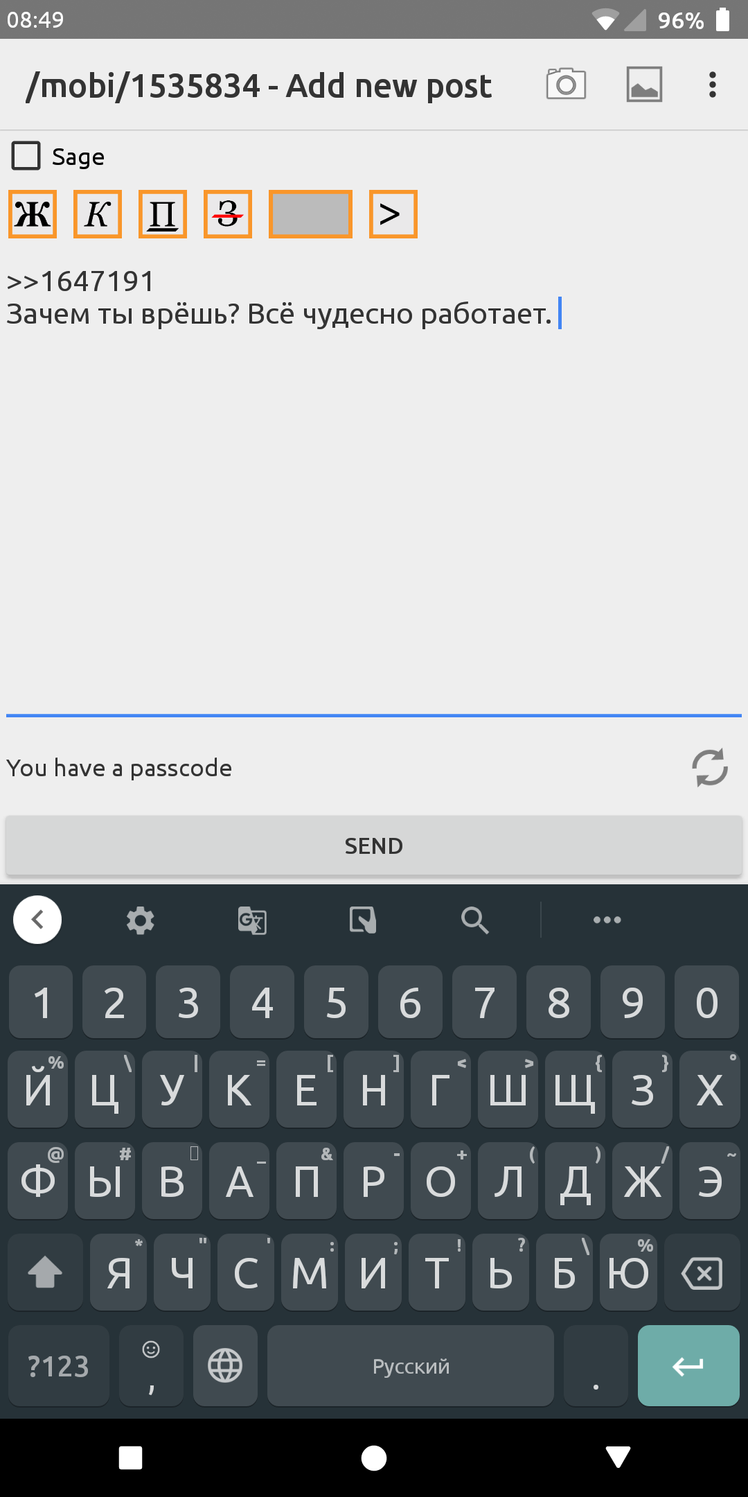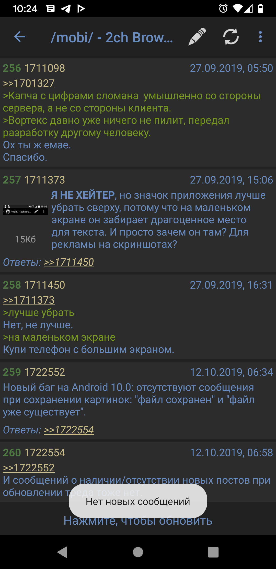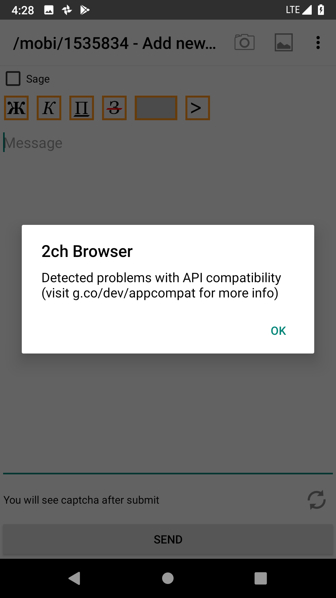 Не могу ничего написать с приложения 2chбраузер Пишет невозможно прочитать ответ с сервера А если ещё раз попробовать, пишет: что-то сломалось? И кидает отчёт на почту