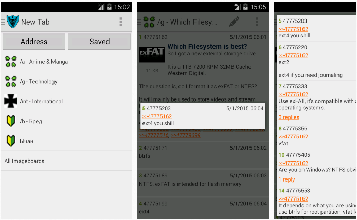 Отличная программа, теперь пользуемся любимым форумом всей семьёй! Все домочадцы нашли себе раздел по интересам: сестричка - картинки с маленькими пони, брат каких-то трапов, отец сидит в разделе про автомобили и медицину (ищет там средство от облысения). Ну а мне понравился раздел "b", столько интеллигентных, образованных и увлечённых людей нет больше нигде!
