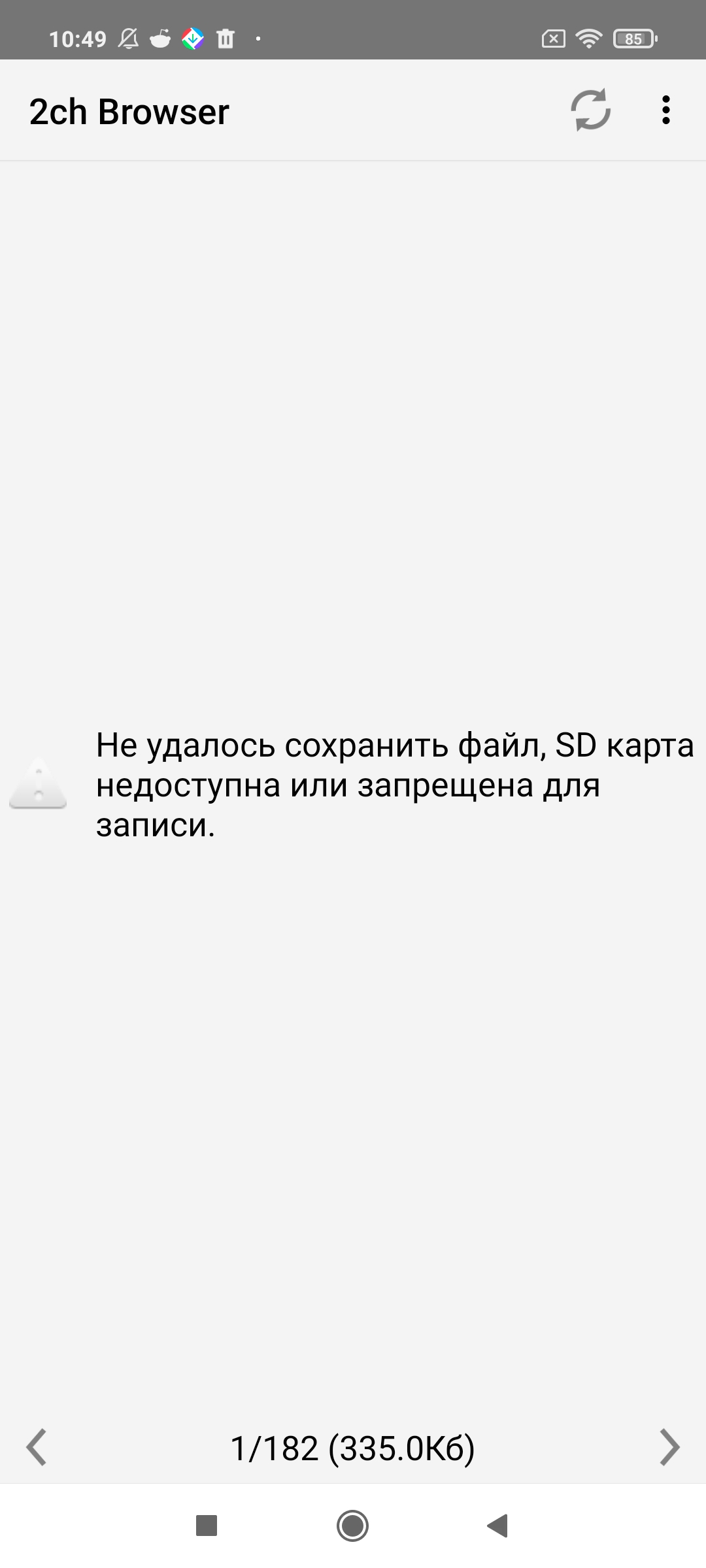Подскажите, чому так? Скачал 2ч браузер на новую мобилу и не могу открыть ни одну пикчу. SD карты нет, но на прошлом телефоне и без SD карты все работало. Разрешения все даны приложению.