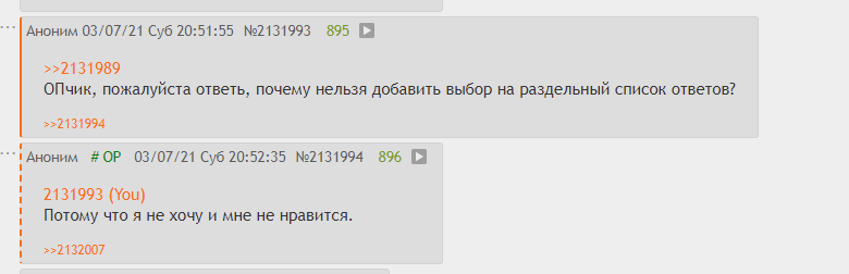 А можно убрать курсив под постами, где написано ответы? Я не люблю курсив. И добавить тонкие полоски между постами, чтобы их разделить. Я люблю полоски.