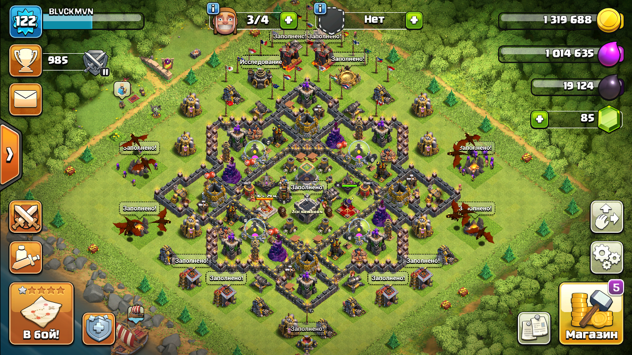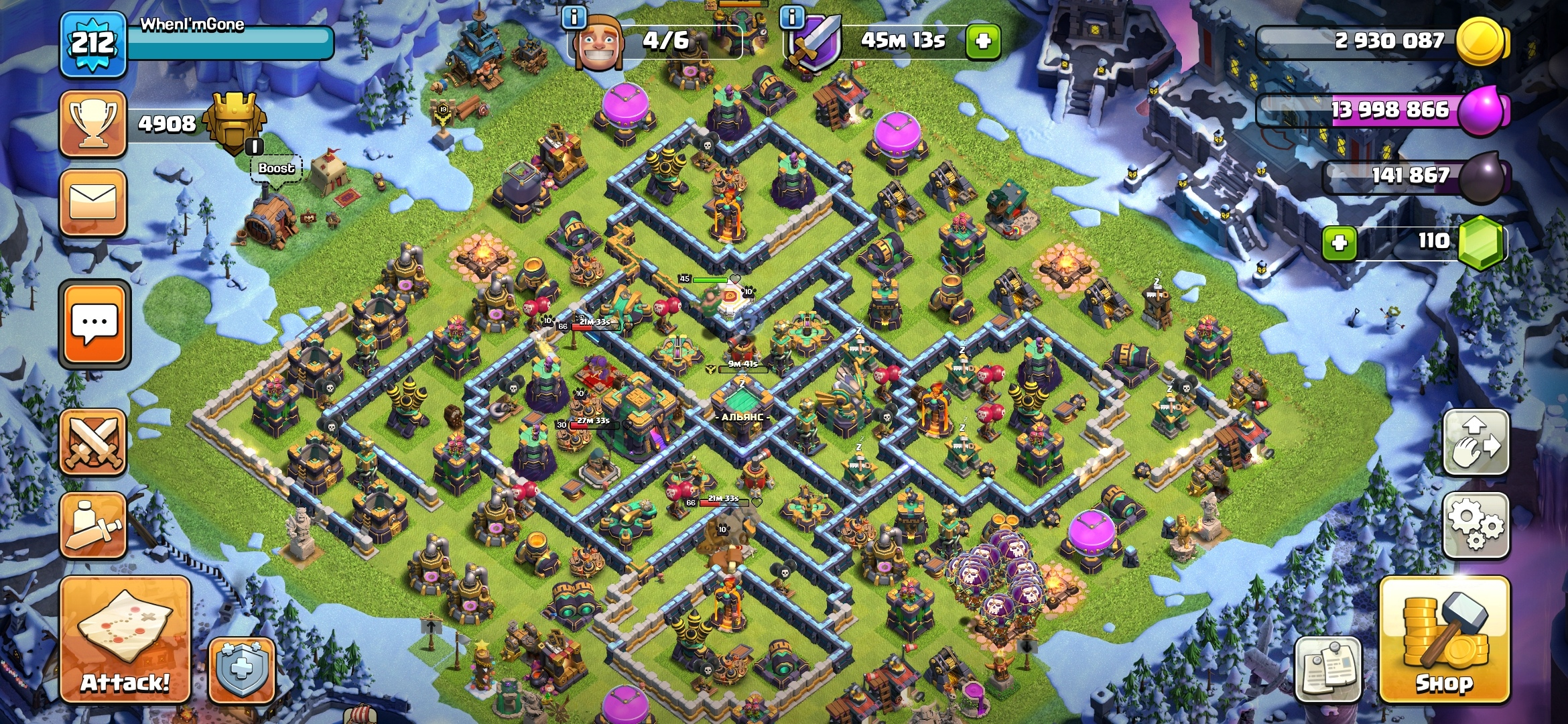 Скинь тег чтобы я тебя пригласил. В профиле скопируй. >>1943520 >Давно не играл, акк 15-го года. Сейм для многих. > Атаковать умею только драконами Норм. По сути для этого и нужны драконы - легкая страта и скилл не нужен. Когда будешь уже тх11+, будешь атаковать электро драконами. Схема та-же. Мы ЛВК и КВ катаем, но на результат абсолютно поебать, получаем медальки с ЛВК и фармим ИК. Так и живем. Так что атакуй чем пожелаешь, почекай шапку, там есть каналы где тебе про атаки пояснят. >Надеюсь у вас научат чему-нибудь. Учу прямо в треде: качаешь нонстоп квину, делаешь стабильный онлайн на ИК (Игры Кланов, ивент где весь клан делает задания и потом получает неплохие награды) и мы с тобой поладим. За купленного 5ого строителя жму письку, красава. >>1943527 Тх 10 тоже сасаный такой, наверное самый красивый и забор ахуенный, но если рано остановишься то играть больше не будет смысла. Тем более в недавней обнове понизили стоимость апов юнитов и строений, так что будет проще прокачиваться чем когда-либо за всю историю фермочки.
