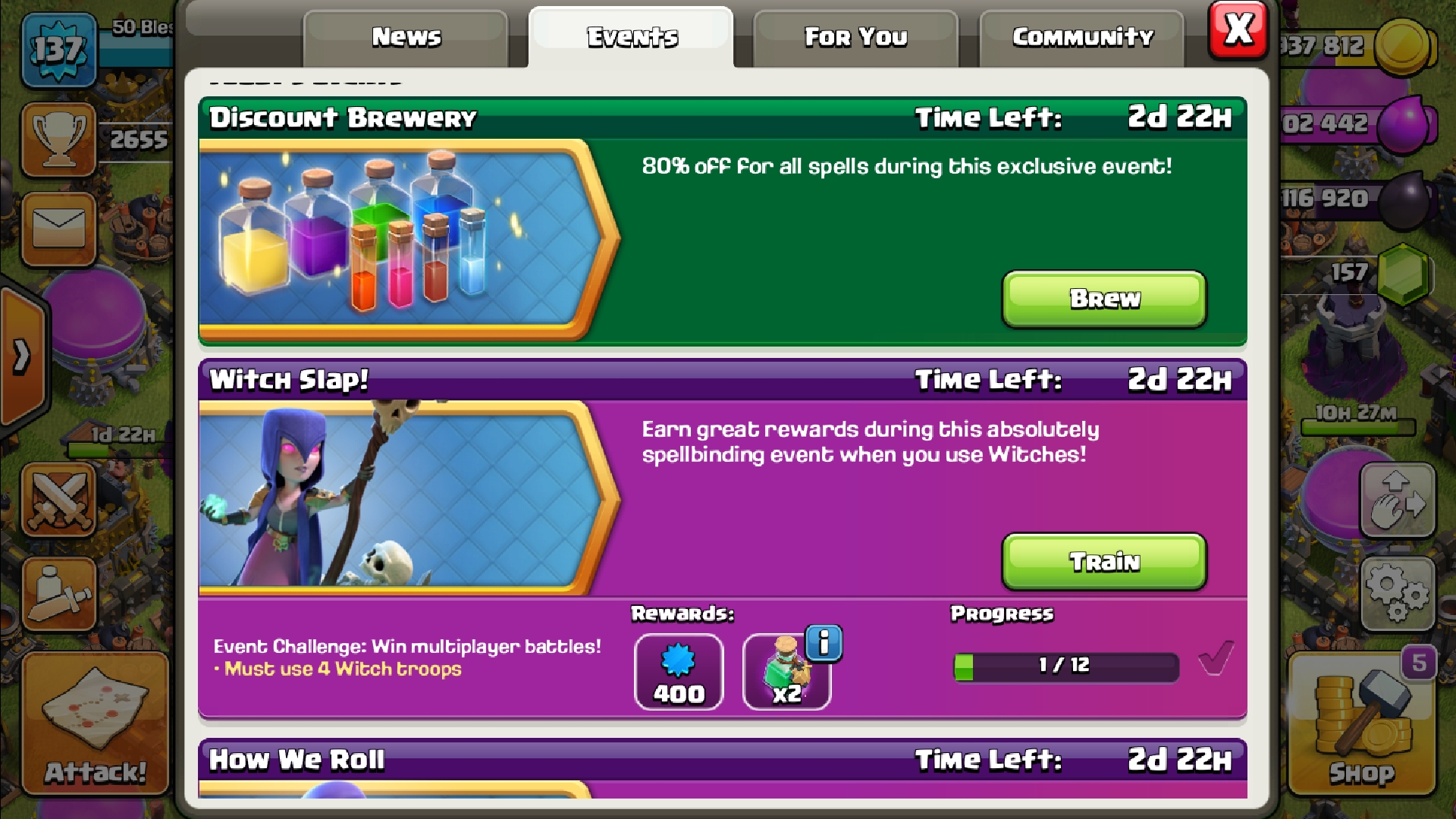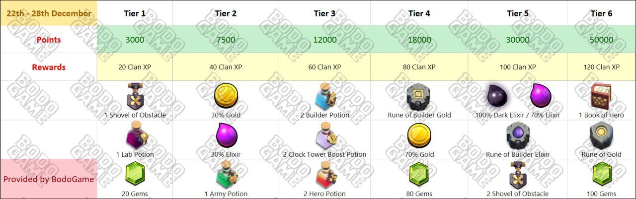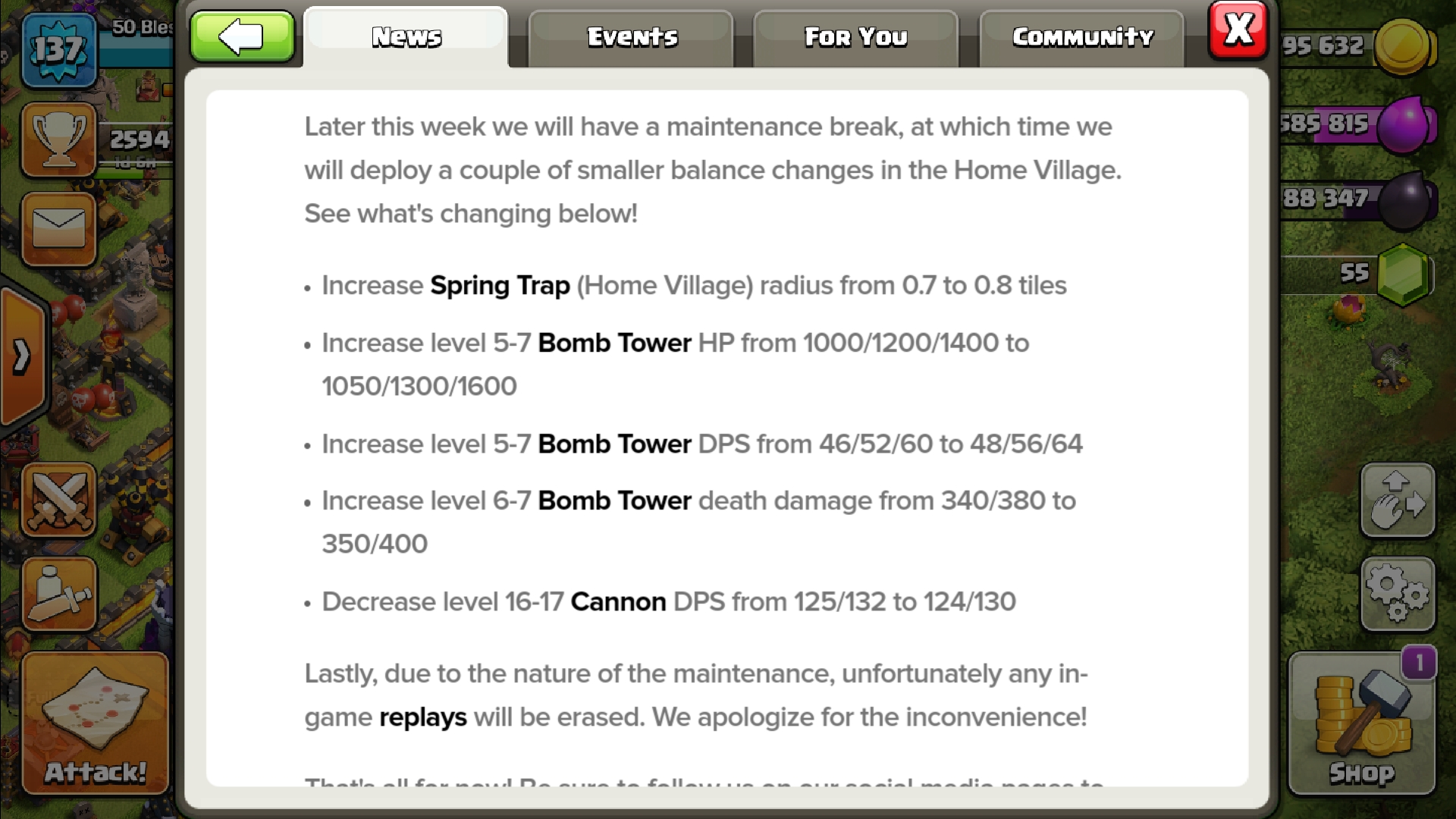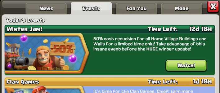 Была введена вторая база, с прокачкой которой появляется возможность получить 6 строителя. Убрали глобальный чат. Теперь траллировать домохозяек и хачню не получится. Ставь эмодзи, определяющий твой стиль игры, и соси хуй получай приглашения от желторожих и прочей нечисти. С декабрьским патчем пообещали исправить и ввести более точный поиск по твоему региону. Введены ЛВК и ИК. ЛВК (Clan War Leagues/CWL) - турнир среди кланов со своей лигой. Проводится раз в месяц, на 15/30 человек, воюется на протяжении 7 дней. По итогам занимаются места, кого-то опускают в лиге, кого-то поднимают. Дают еще медальки, за которые можно купить плюшки для прокачки героев/базы и прочее полезное и не очень. ИК - по окончанию лвк через несколько дней стартует этот ивент, в течении которого всем кланом выполняете задания и зарабатываете очки. Если набрали всем кланом достаточное кол-во очков, то получаете возможность выбрать награду. Сезонные челленджи. В течении месяца делаешь задания и получаешь всякие плюшки для прокачки базы/героев. Если занесешь денежку в размере 300 с небольшим деревянных, то получаешь золотой пропуск и награда за очки увеличивается. Можно перед покупкой глянуть что дают и решить, нужно ли тебе или нет. Еще и скин дают, чтобы перед одноклассниками повыебываться на 4 пике скин варвара текущего сезона. Мини ивенты Как правило между всеми этими событиями есть достаточно времени, чтобы впихнуть еще пару-тройку заданий. Например, за два-четыре дня выиграть n-числом каких-то определенных юнитов битв. Обычно дают скидку на этих юнитов и по итогу какую-то вкусняшку.