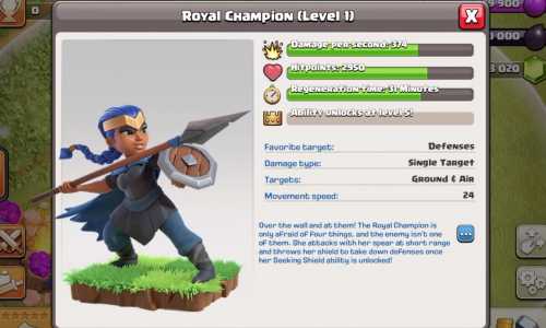 А сегодня презентовали нового героя! Того, от которого торчало ухо на стенде со всеми героями. Слава феминизму! Это не очередная хуемразь, а няшная мулаточка-амазоночка-писечка-сладенькая. Качаем за дарк до 20 уровня вот почему блядь нельзя всех героев сделать одного уровня, м?. Рендж атака копьем. Вчерашний йети милишный Первый герой у которого приоритет в атаке - защитные здания. Умеет перепрыгивать через забор как дед-пердед. Из абилок - бросок щита в защитное сооружение, от которого рикошетит в следующее защитное сооружение и так до 4ех зданий. При этом урон не уменьшается, как у электро дракона. Ну и плюс подхил, как у двух героев. Алтарь героя можно построить только на 13 тх.