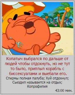 -Ваш покорный слуга зашкварился пофармив шахтерами. Деда кукухой поехал, сеньор виндикатор прописал таблетки НО ПИТЬ Я ИХ НЕ БУДУ.