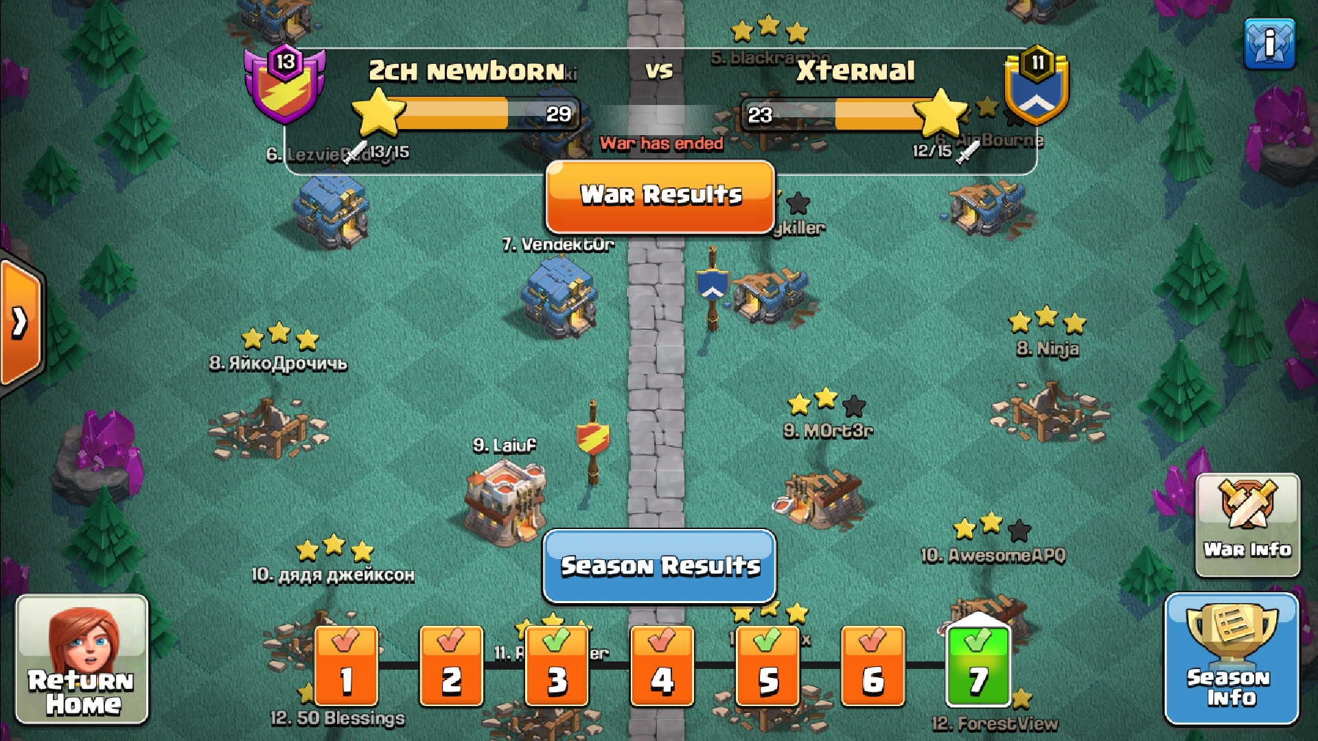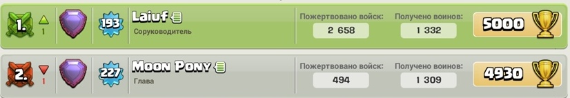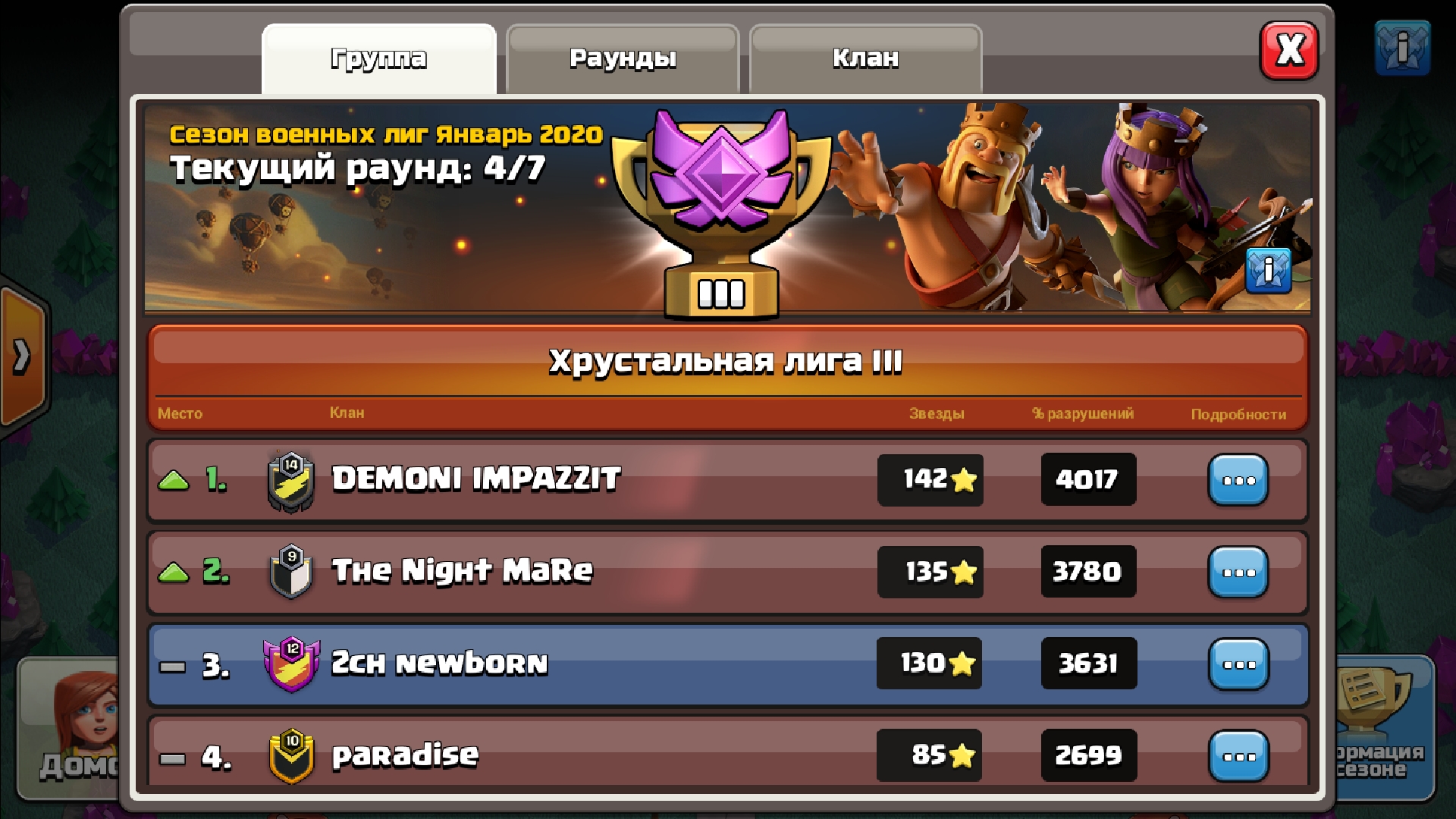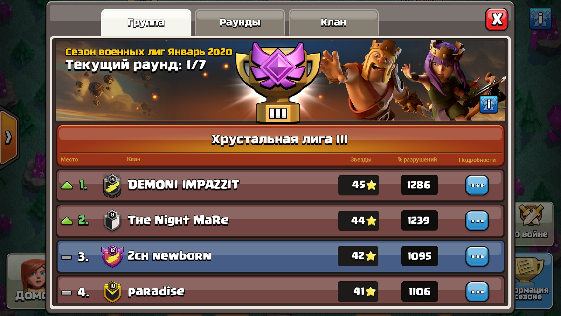 Лень было постить в этом треде о последних результатах клана 2ch newborn без скринов. Но бампану все таки одной писаниной с рандомпиком. В лвк мы заняли первое место и тем самым апнули лигу до кристала 3. Последние две кв (кому они вообще теперь интересны?) тоже выиграли с минимальным отрывом, т.к. все качают героев, базу, небо, аллаха. До игр клана менее пары недель, а пока кушаем ивенты, зарабатываем изумруды с экспой.