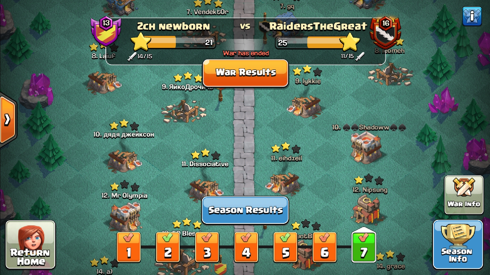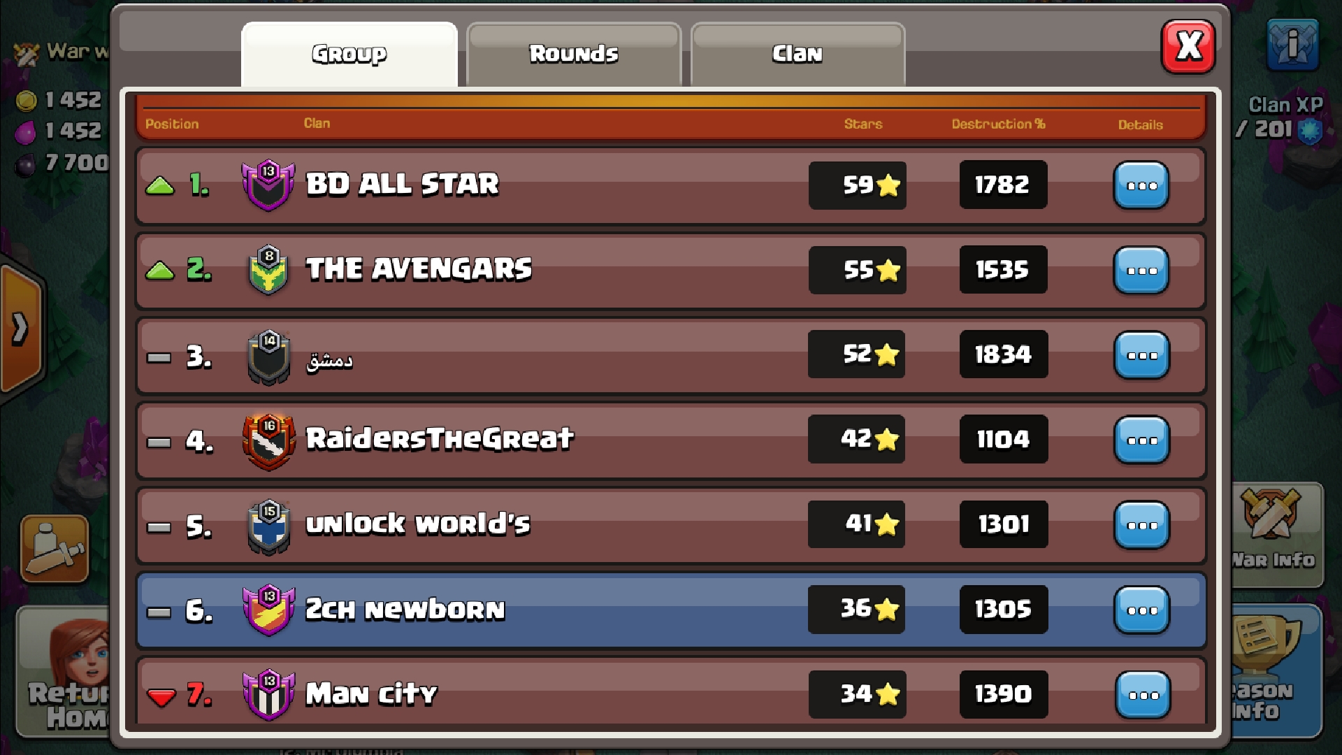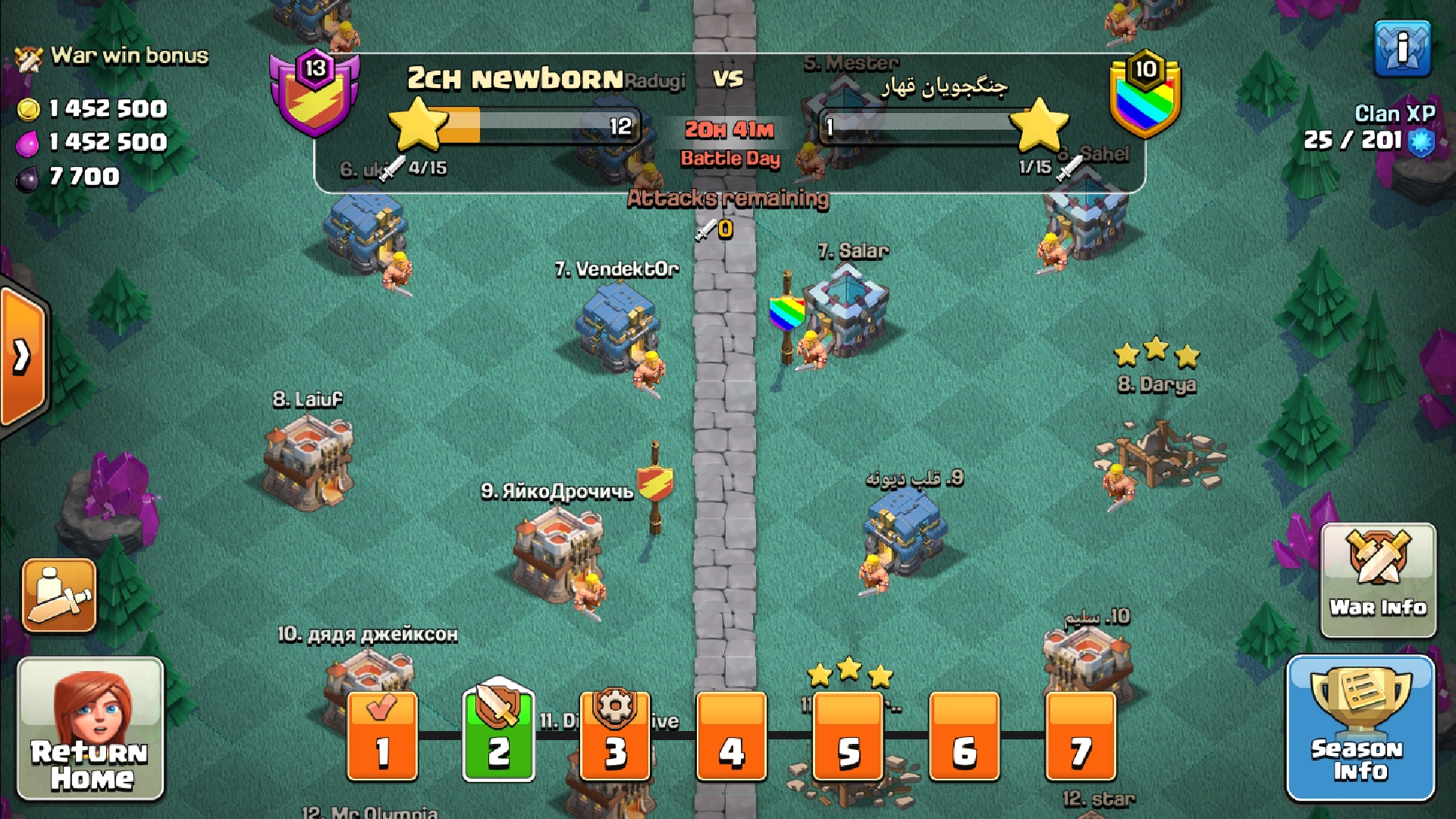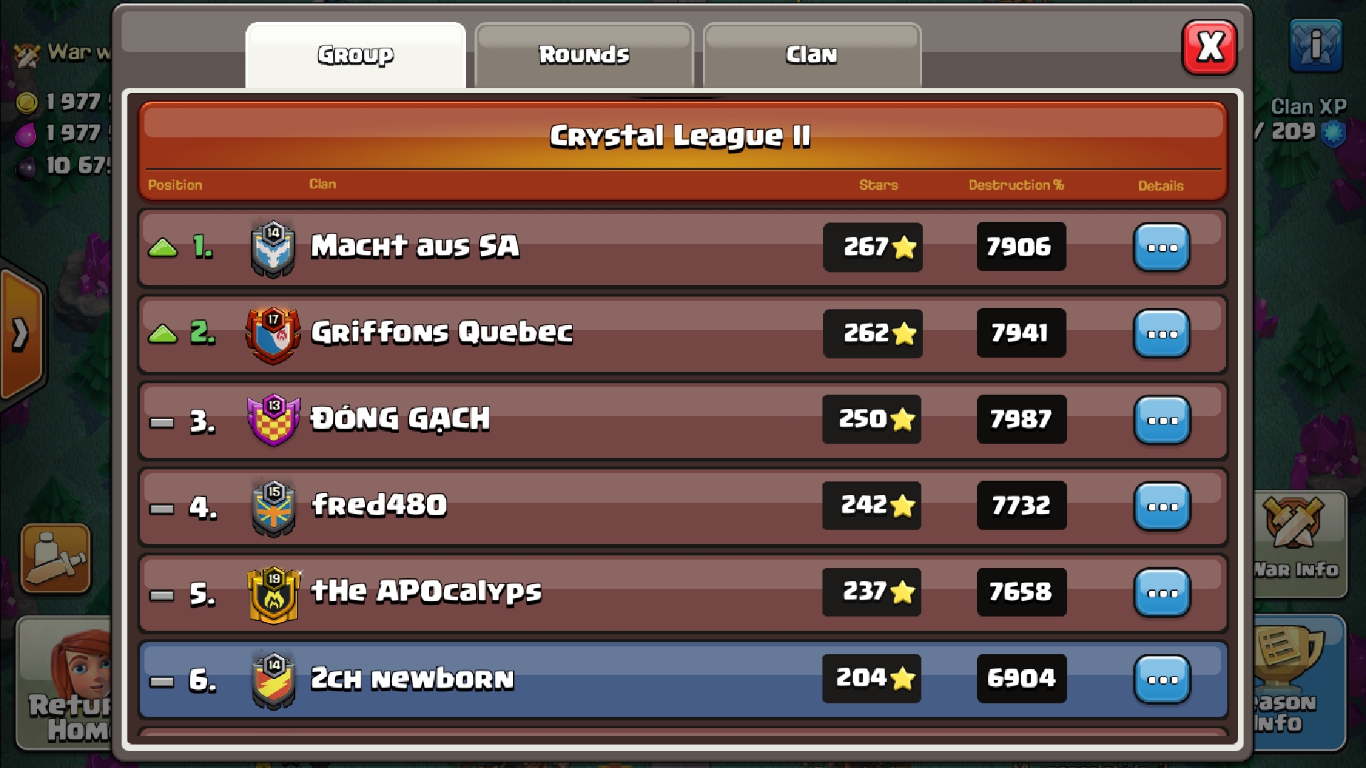 -И сразу к серьезным делам. Пока США и Иран решили поиграть в войнушку, у нас началась настоящая мясорубка ввиде ЛВК. И это полный пиздец товарищи. Чекаем фотокарточку с текущей таблицей и наблюдаем минимальный разрыв в 1-2 звезды между нами и вашим очком остальными кланами. Пиздилка в идеале за топ 2 чтобы апнуть лигу и получить медалек и ордена на грудь, чтобы место в автобусе уступали. Но скорее всего будет 3-4 место, что кстати уже неплохо УЧИТЫВАЯ ЧТО У НЕСКОЛЬКИХ ЧЕЛОВЕК КВИНА НА АПЕ БЛЯТЬ. КВИНА. НА АПЕ. Да вы кто такие чтобы это делать блядь. Вы че ебланы а В первой войне попались слабенькие противники, дальше только сложнее. Если не будем творить хуйню, можем получить и хорошее вознаграждение.