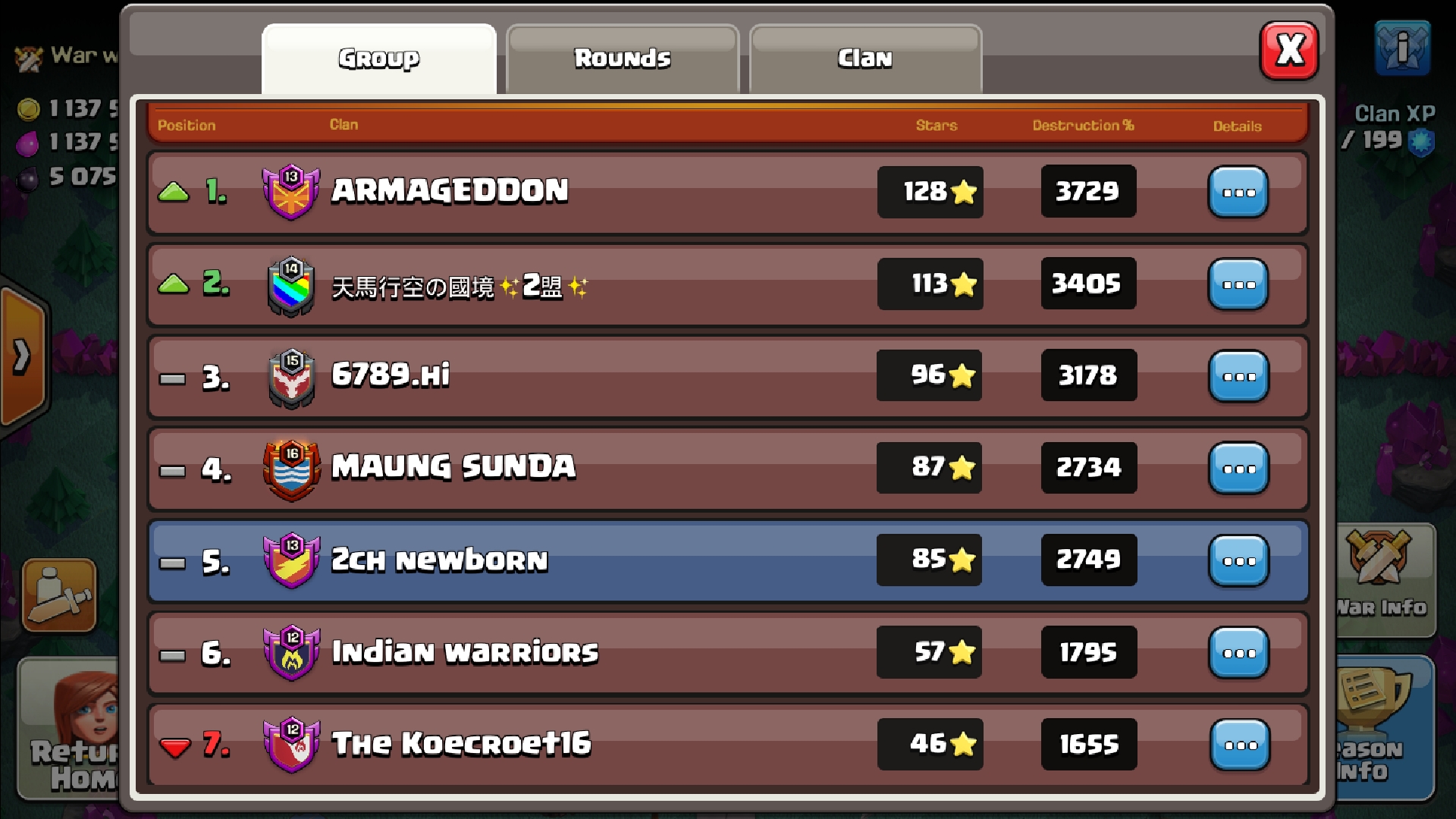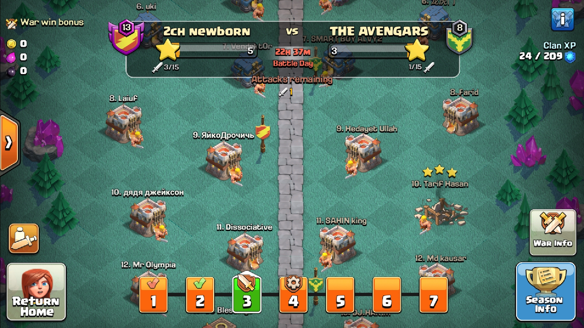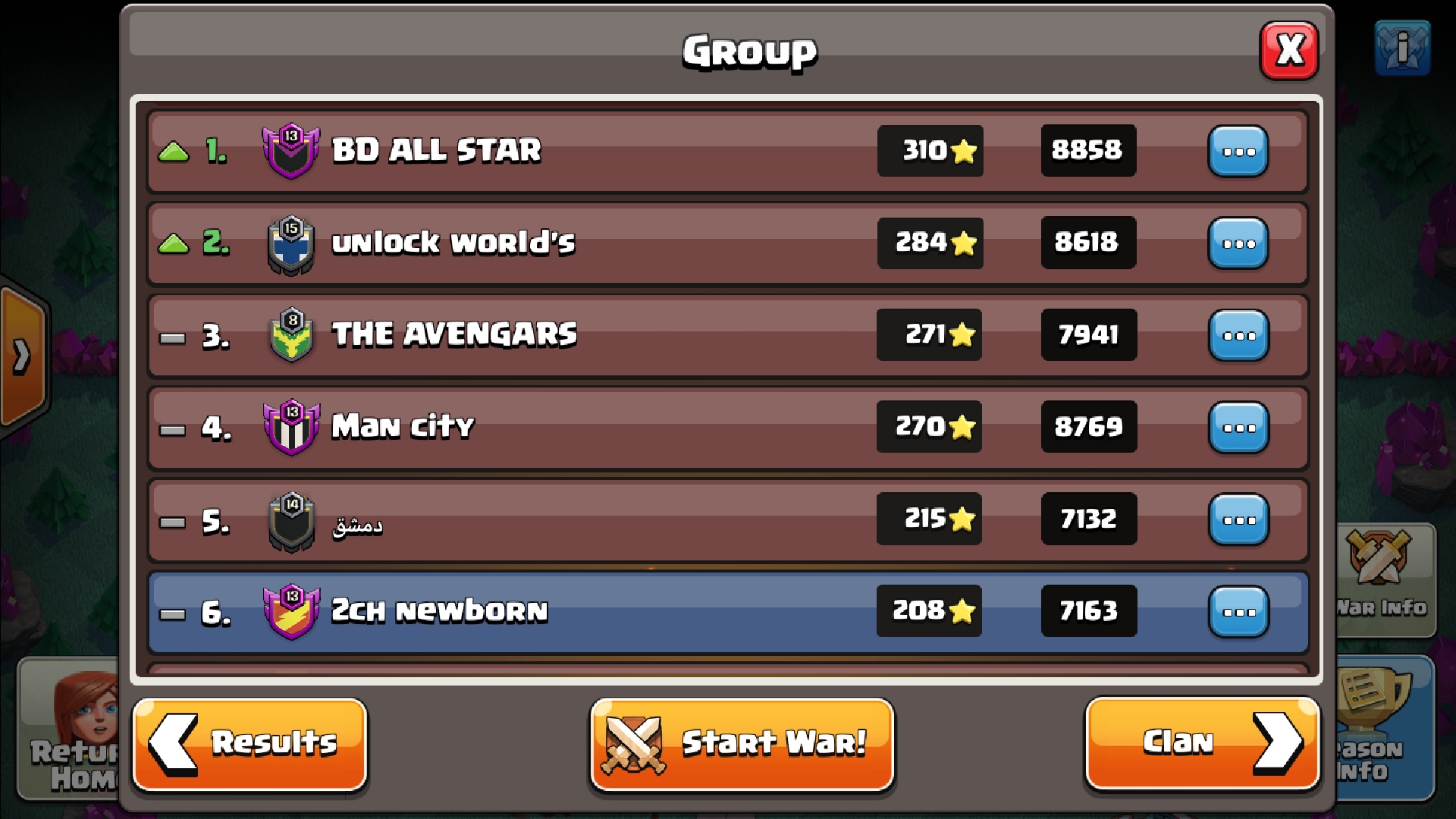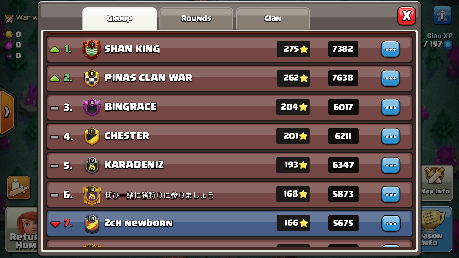 -И сразу к серьезным делам. Пока США и Иран решили поиграть в войнушку, у нас началась настоящая мясорубка ввиде ЛВК. И это полный пиздец товарищи. Чекаем фотокарточку с текущей таблицей и наблюдаем минимальный разрыв в 1-2 звезды между нами и вашим очком остальными кланами. Пиздилка в идеале за топ 2 чтобы апнуть лигу и получить медалек и ордена на грудь, чтобы место в автобусе уступали. Но скорее всего будет 3-4 место, что кстати уже неплохо УЧИТЫВАЯ ЧТО У НЕСКОЛЬКИХ ЧЕЛОВЕК КВИНА НА АПЕ БЛЯТЬ. КВИНА. НА АПЕ. Да вы кто такие чтобы это делать блядь. Вы че ебланы а В первой войне попались слабенькие противники, дальше только сложнее. Если не будем творить хуйню, можем получить и хорошее вознаграждение.
