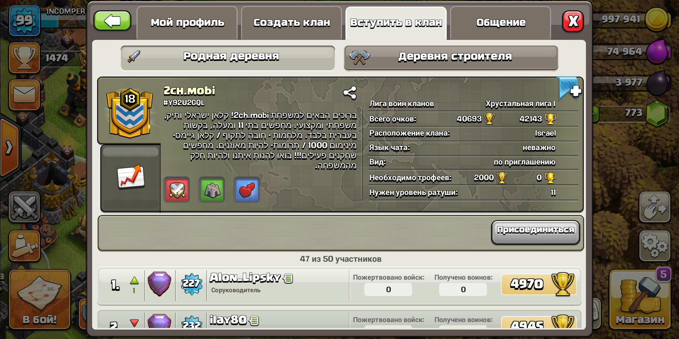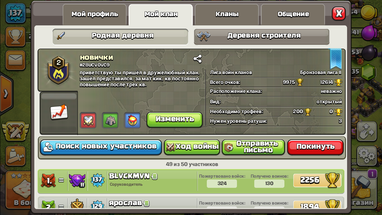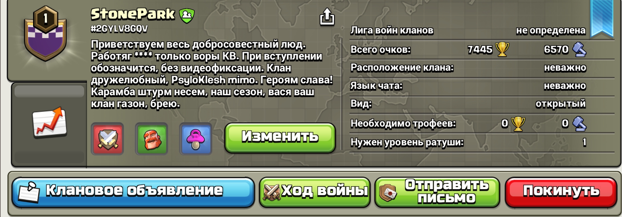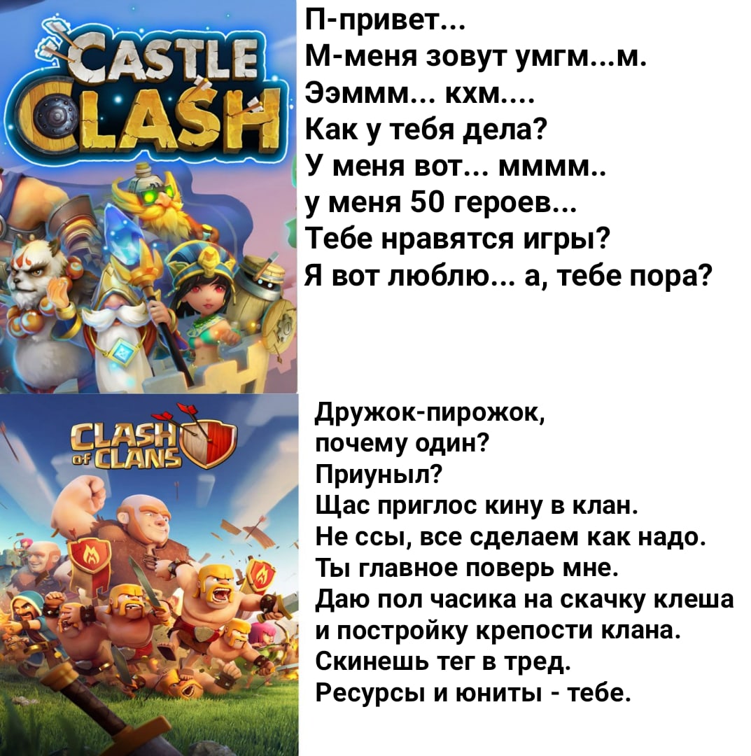Так как обосрался с разметкой и запятыми там, бампану еще разок тем же с пикчей. !!!Для тех кто ищет двачерский клан, но натыкался на какие-то давно помершие или вообще не находил!!! Есть уже довольно старый клан, #99GPUG0Q в котором еще есть приличный актив и в котором сидят олды (да-да те самые, которые еще застали тот самый двощ с педаликом), половина уже серет под себя и заходит только задонатить малышам, хотя и малышей уже почти не осталось - все подросли как ирл, так и со своими базами. Так вот, рады всем, но высоким тх рады будем еще больше, т.к. на лвк хотелось бы продвинуться выше, чтобы рубить капусту медальки.