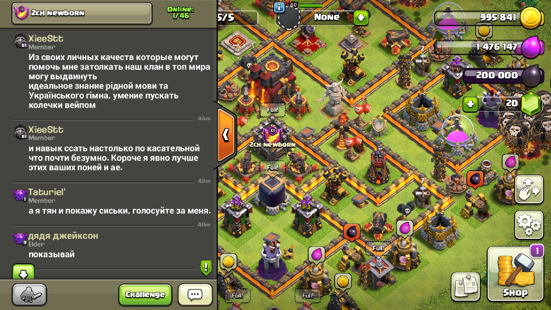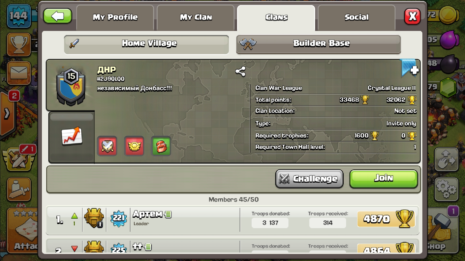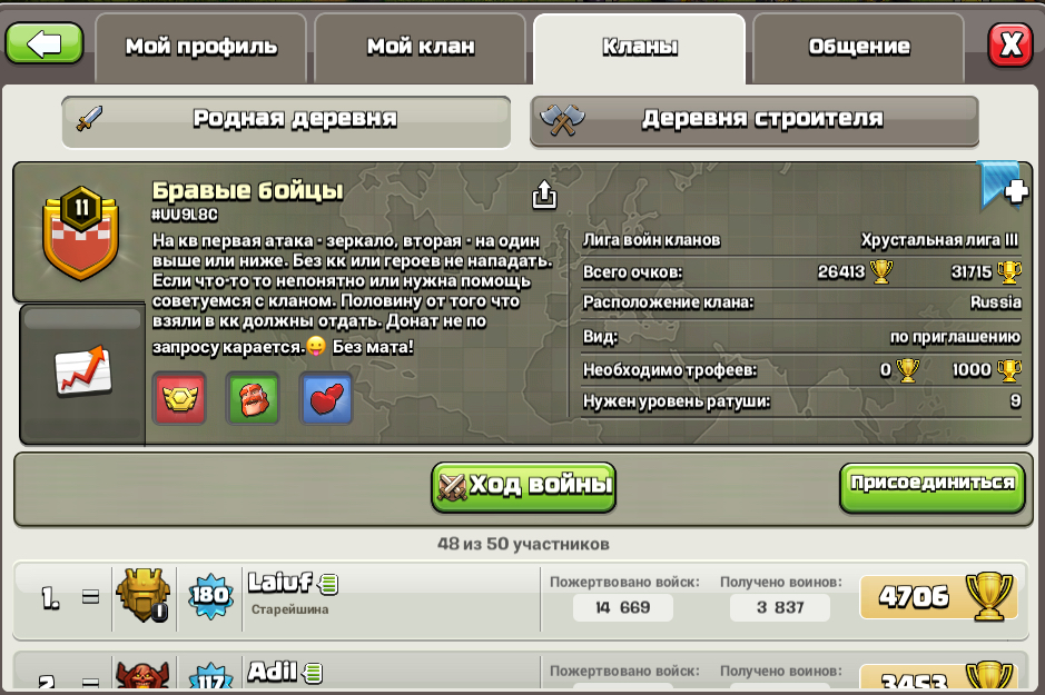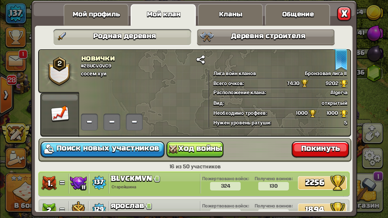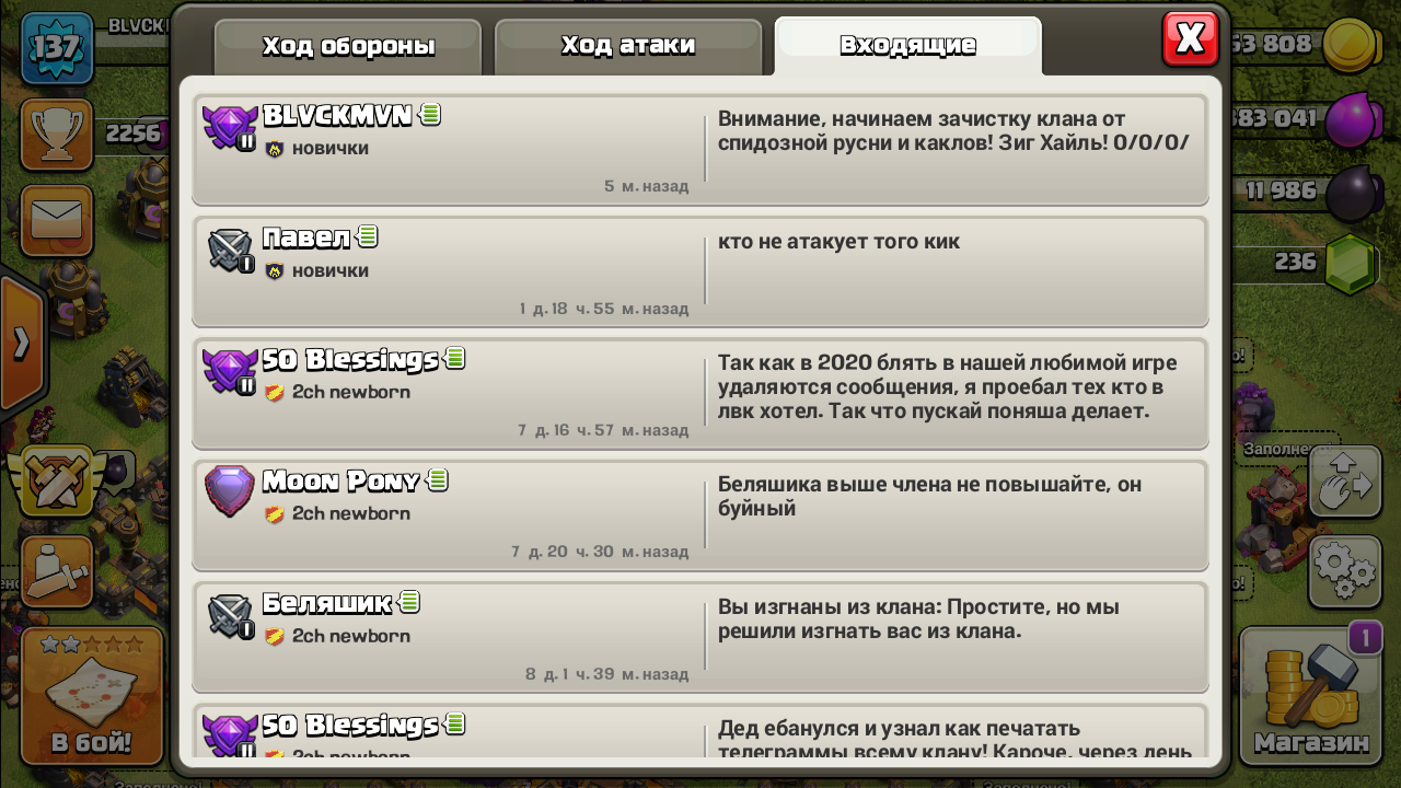 !!!Для тех кто ищет двачерский клан, но натыкался на какие-то давно помершие или вообще не находил!!! Есть уже довольно старый клан, #99GPUG0Q в котором еще есть приличный актив и в котором сидят олды (да-да те самые, которые еще застали тот самый двощ с педаликом), половина уже серет под себя и заходит только задонатить малышам, хотя и малышей уже почти не осталось - все подросли как ирл, так и со своими базами. Так вот, рады всем, но высоким тх рады будем еще больше, т.к. на лвк хотелось бы продвинуться выше, чтобы рубить капусту медальки.
