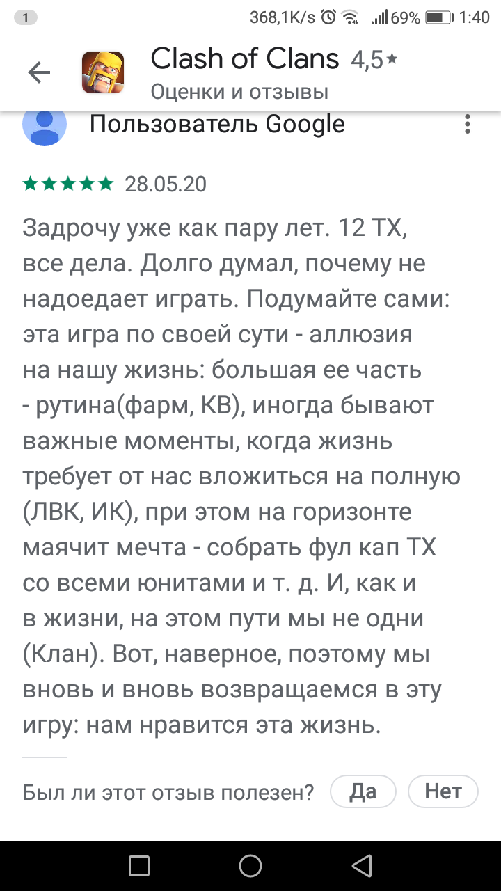 Ну тут согл, играю тоже по этой причине, игра особо не требует от тебя скилла или задротства. Но очевидно, что за копеечку на пасс, например, ты прокачиваешься быстрее почти в два раза чем остальные. С недавним ивентом на -50% я прокачал убер много. А теперь представь себе месяц так, со скидоном по ресам и времени на постройки, плюс куча рун и скинчик впридачу. Слишком выгодно (наверное самый нормальный пасс который я когда-либо видел. На изичах можно до ласт лвл дайти) чтобы его не покупать. А хейчу я, уже по инерции. Это я так проявляю свою любовь к игре.