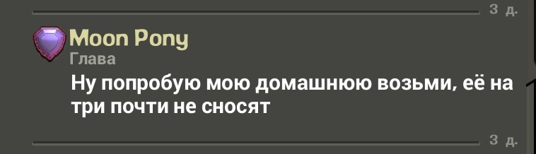 На связи Aleksejus. Я просто хуею с этих пидорасов. Столько лет играть, и за слова просто дать вот так бан. Прощайте, друзья... Блессинг, уки, мун пони, хгикс, 29у, старый хутор, и все те, кого ник мог забыть ник так же. Я столько времени сидел в чате клана, писал рофлы от скуки, общался с вами, было так охуенно...