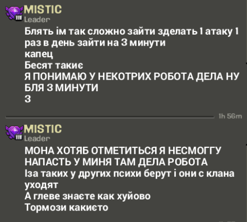 -С тех пор как супащель отключил глобальный чат, клановый (по сути став единственным) не получил никаких доработок, кроме одно преимущества - возможности игнорировать матфильтр. Раз "ресурсы" больше не уходят на глобал, будьте добры добавить возможность просмотра старых сообщений,( неизвестно почему чат лог стирают), добавить индикатор статуса игрока в поле с ником в списке игроков, и в самом чате. Элементарного оффлайн/онлайн будет более чем достаточно. Хоть и в кланах подобному нашему, и так понятно кто любит ночью поиграть с анальным колечком, а кто предпочитает днем зайти. Но это редкий случай.